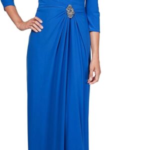 Alex Evenings Women’s Long 3\/4 Sleeve Formal Event Dress with Cinched Tie Waist (Petite and Regular Sizes)