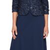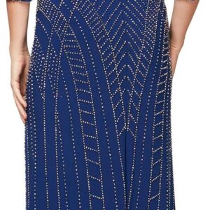 Alex Evenings Women’s Long Beaded Fit and Flare Dress with 3\/4 Sleeve