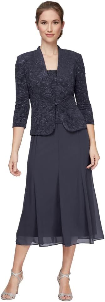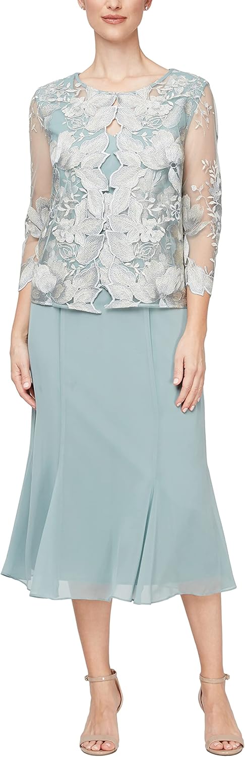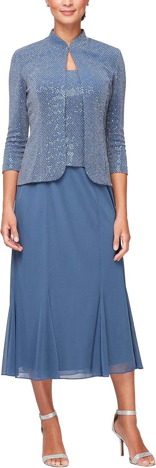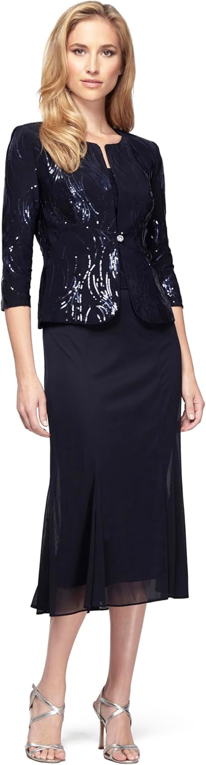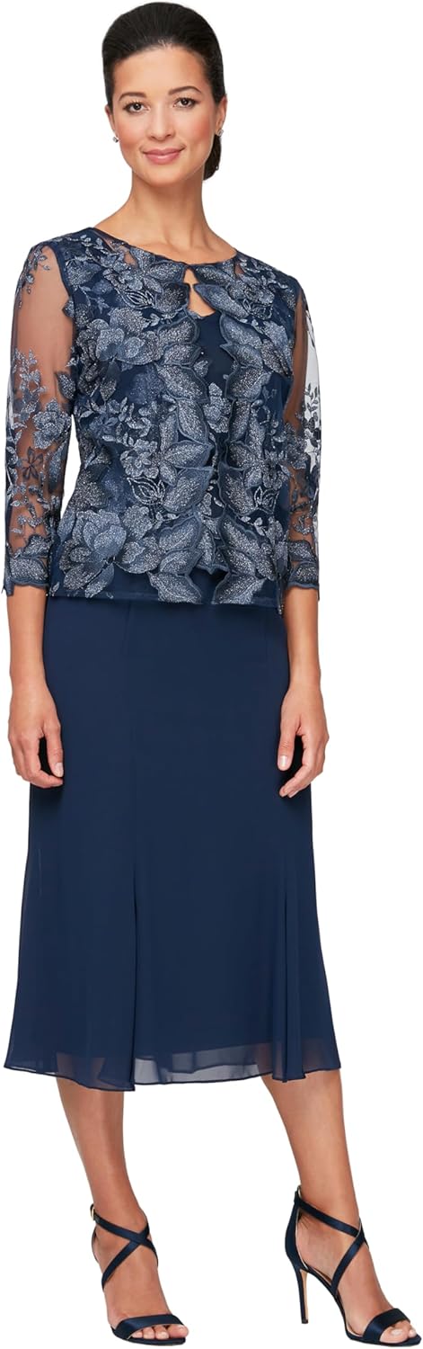 Alex Evenings Women’s Tea Length Jacket Dress, Perfect for Weddings, Formal Events (Petite and Regular Sizes)