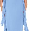 Women's Cap Sleeve High Waist Ruched Slit Slim Elegant Long Satin Forma…