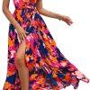 Women's Cap Sleeve High Waist Ruched Slit Slim Elegant Long Satin Forma…