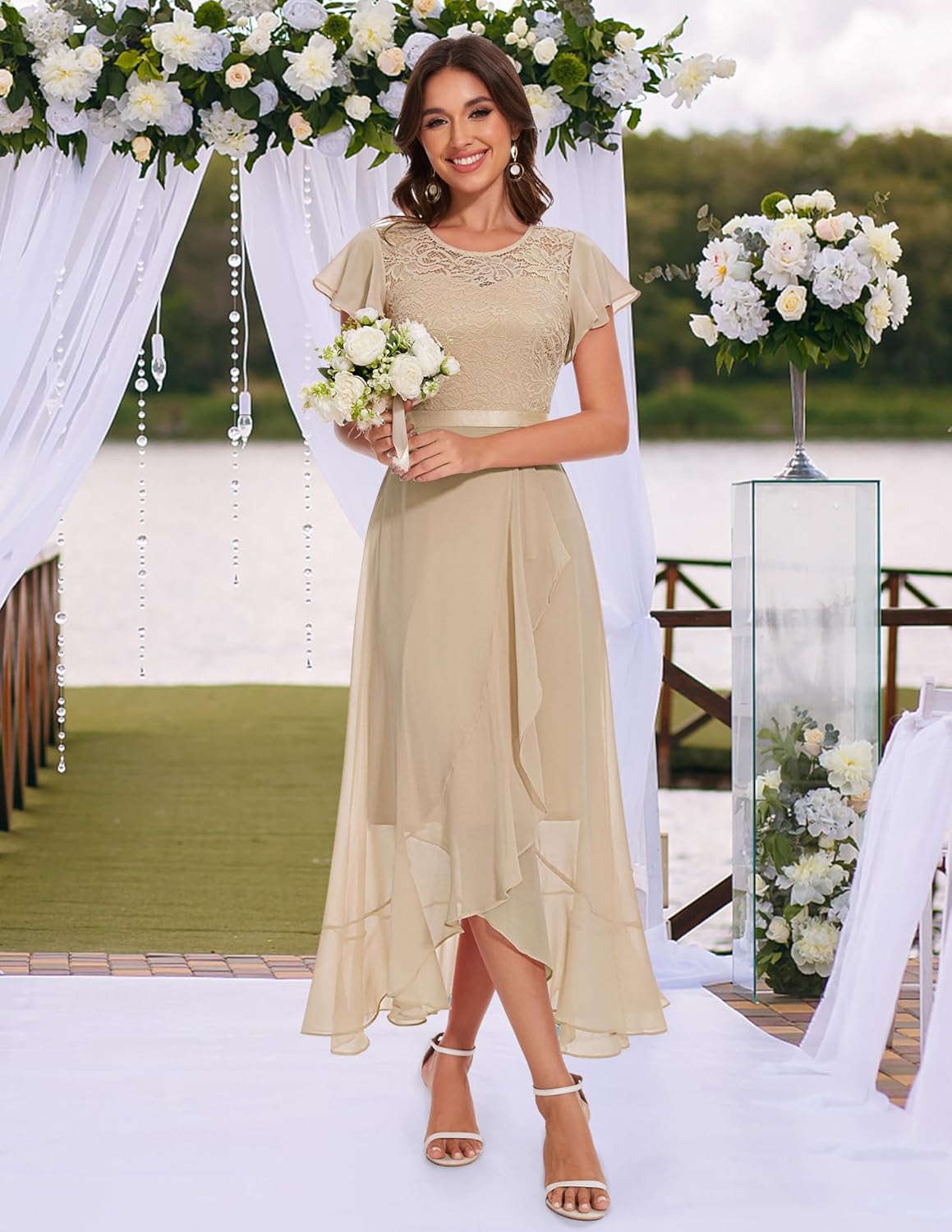 BeryLove Women Elegant Long Wedding Guest Dresses Short Sleeve Evening Dress