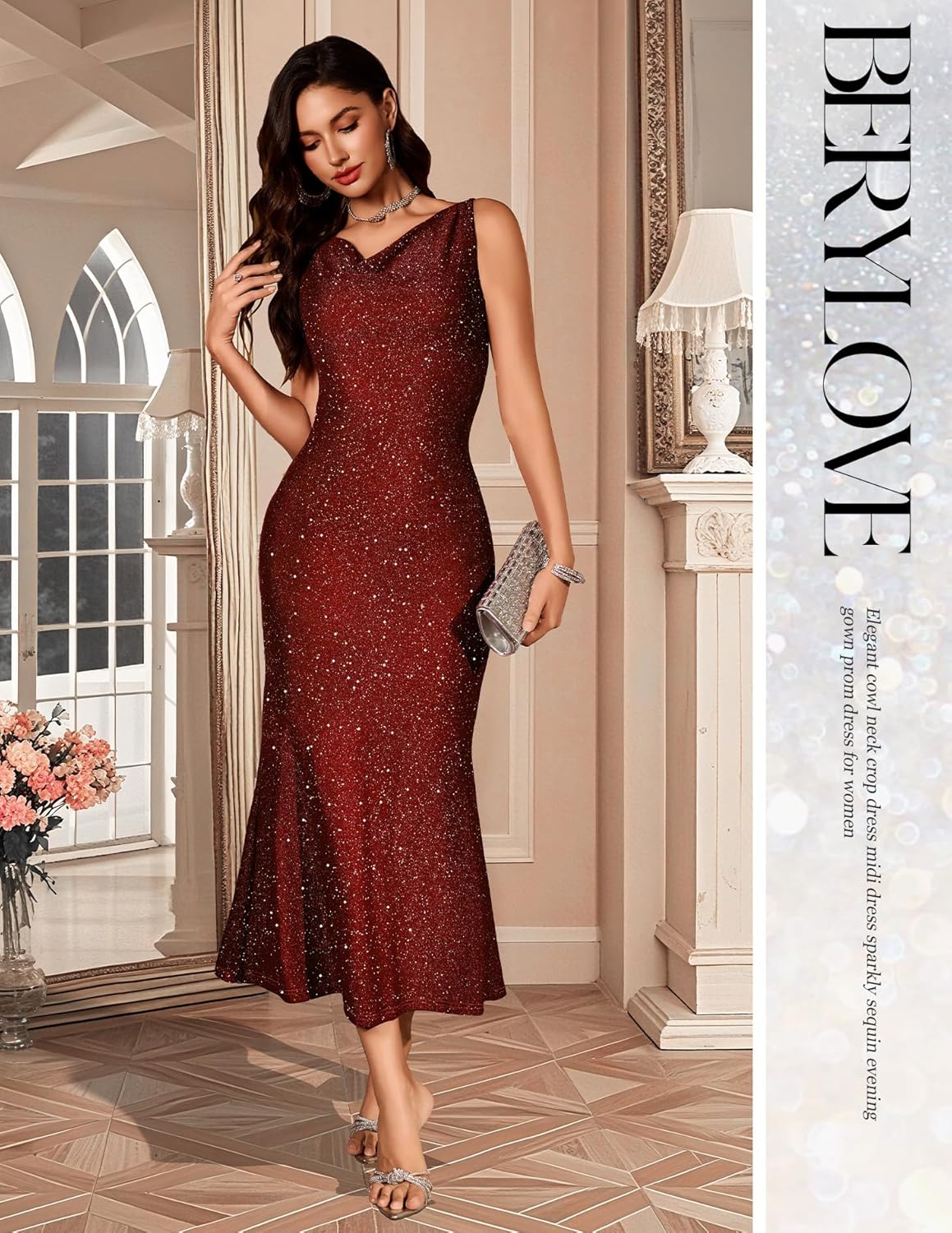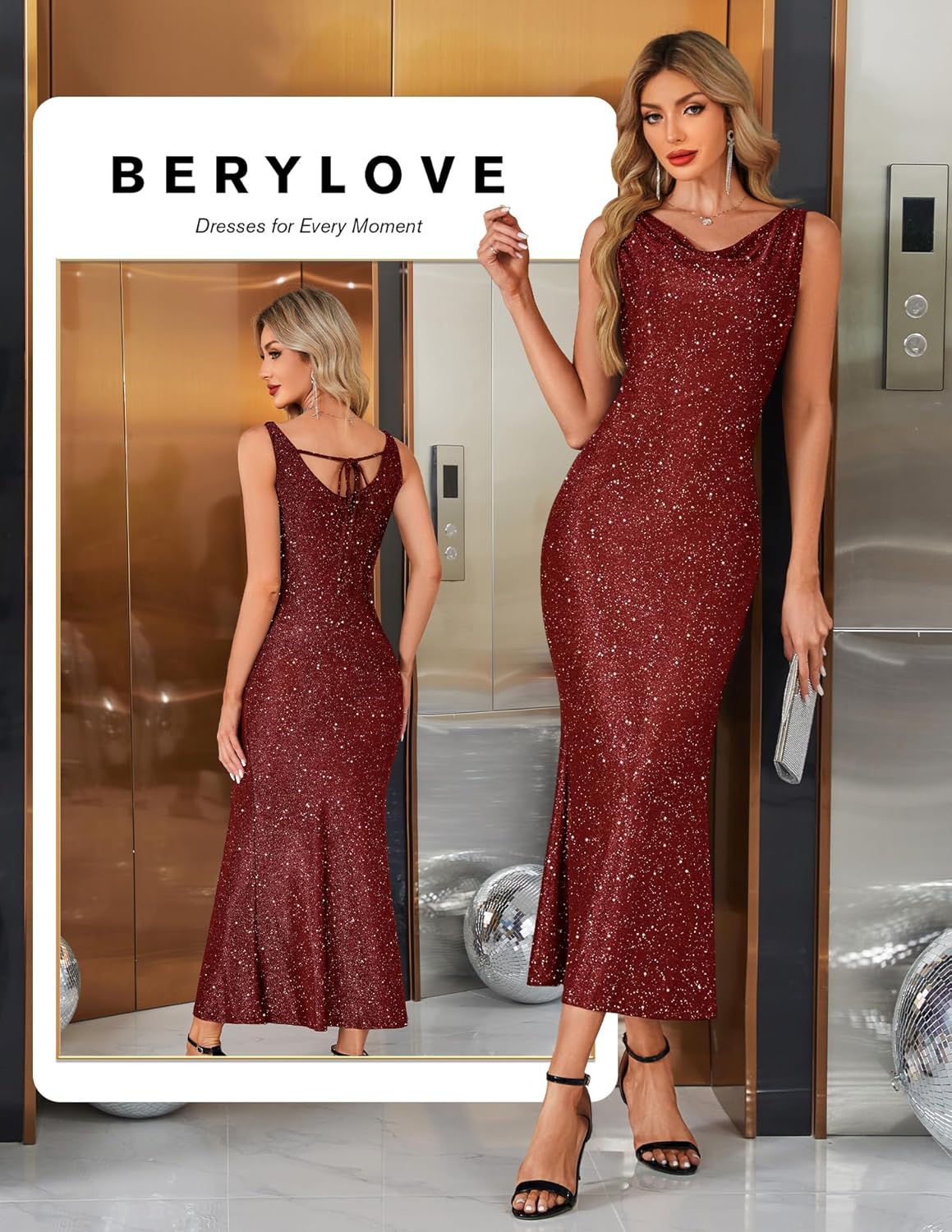 BeryLove Formal Sequin Homecoming Wedding Guest Cocktail Bodycon Prom Dresses