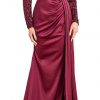 CGTENBS Dress V-Neck Long Sleeve High Slit Evening Gown Sexy Backless Banquet Bridesmaid Dress
