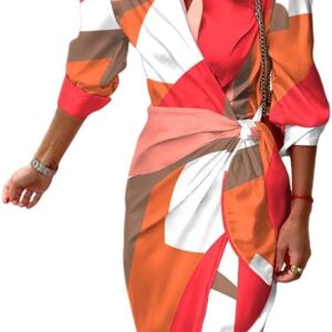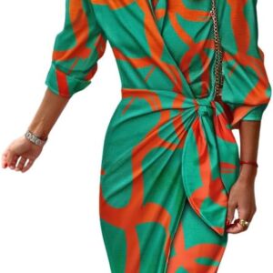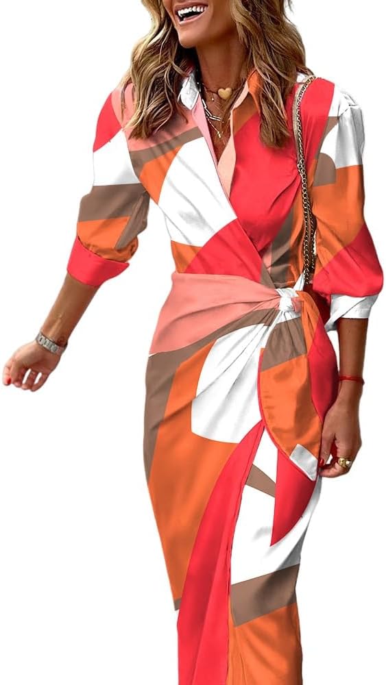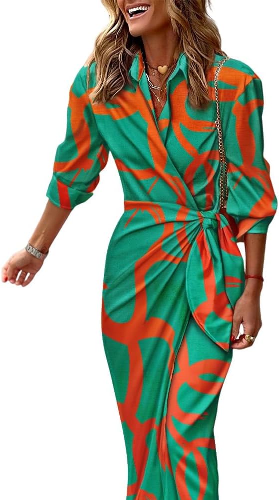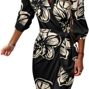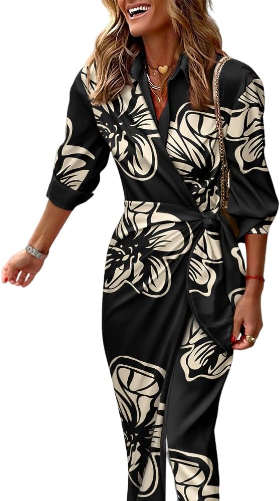 CHICME Women’s Long Sleeve Midi Dress 2025 Casual Wrap Tied Detail Shirt Dresses Floral Print Fall Boho Long Dress