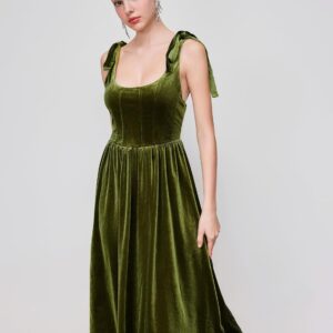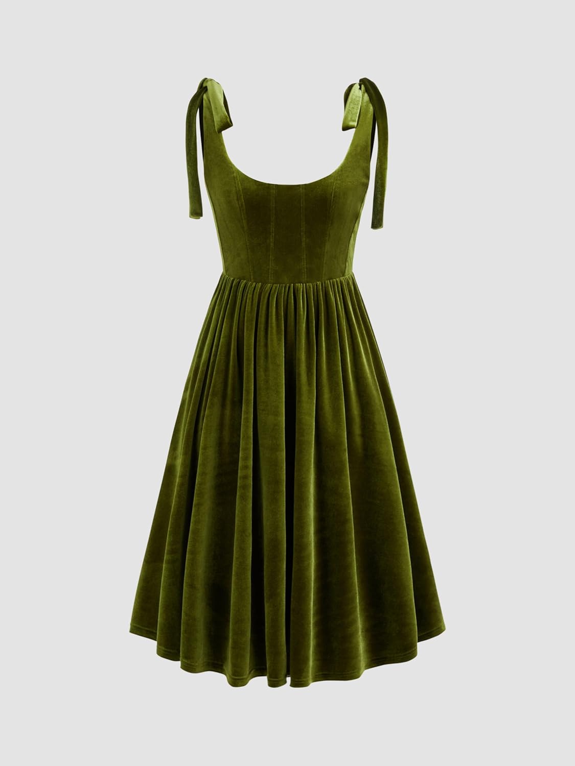 CIDER Velvet Dress for Women Midi Solid Knot Scoop Neckline Sleeveless Cocktail Party Evening Dress