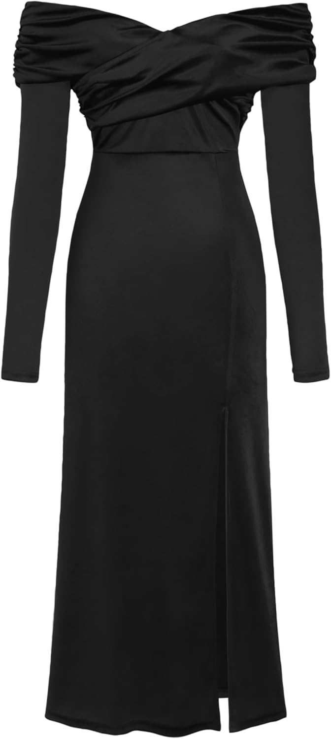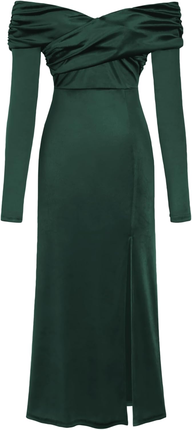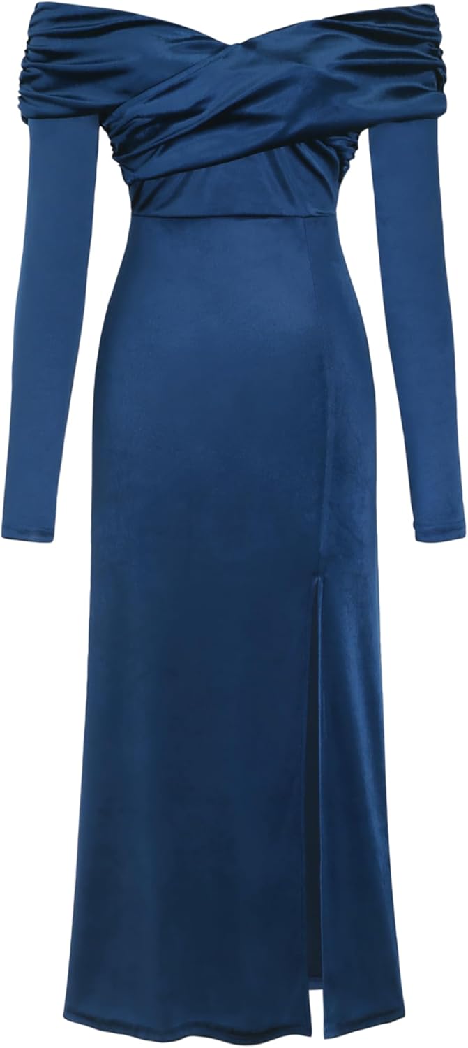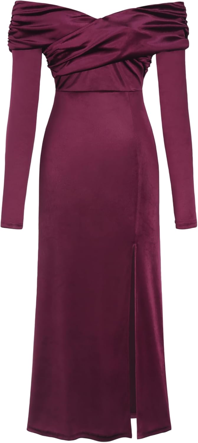 CIDER Velvet Off Shoulder Maxi Dress Formal Split Middle Waist Gown Long Sleeve Evening Dress