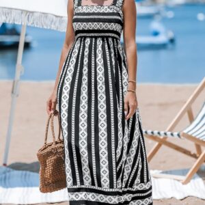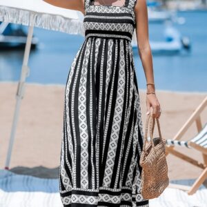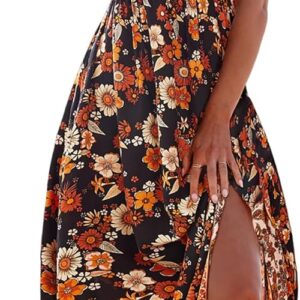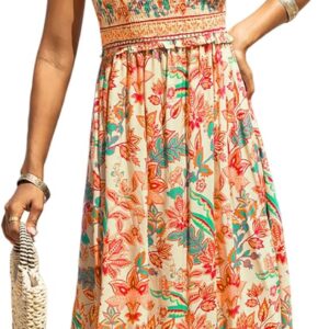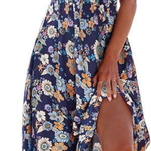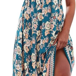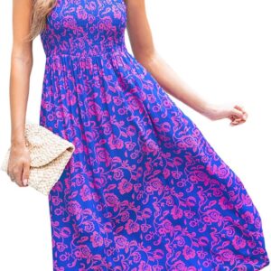 - Features: smocked front detail, ruffled design, adjustable straps, square neck, backless, ditsy floral printed and maxi length, add a interest color to you vacation wardrobe
