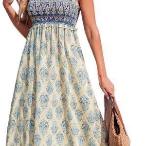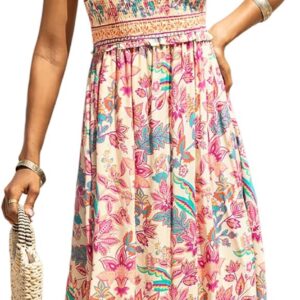 Colorful ditsy floral adjustable straps smocked maxi dress for womenbe