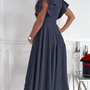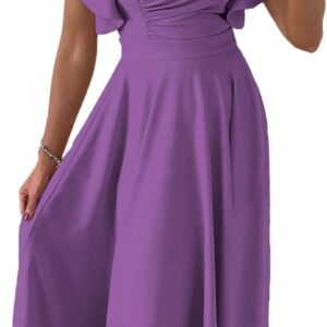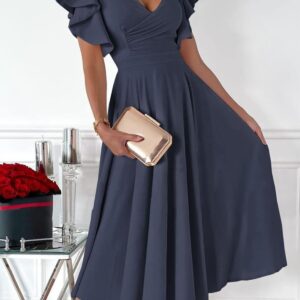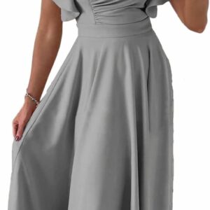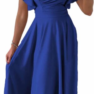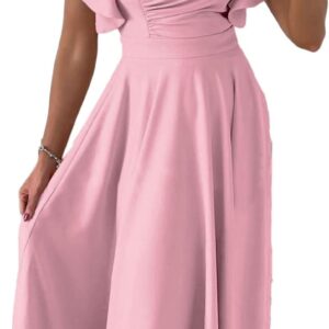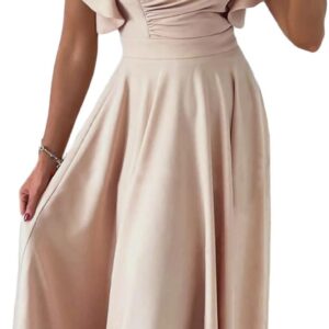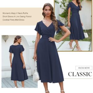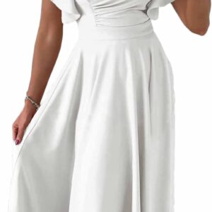 Dokotoo Women’s V Neck Elegant Party Dress Short Sleeve Skater Dress Wedding Guest Dresses