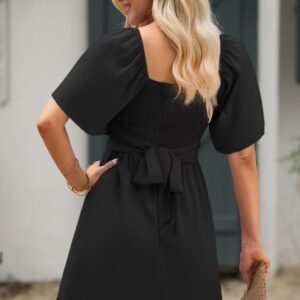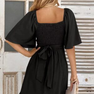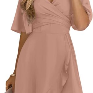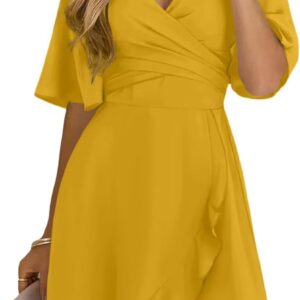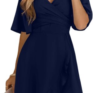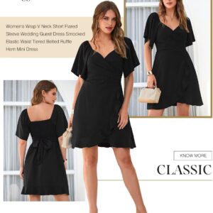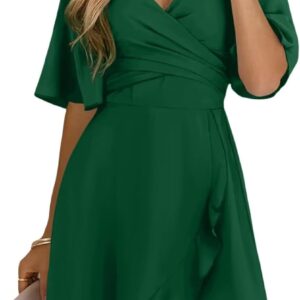 Dokotoo Women’s Wrap V Neck Short Flared Sleeve Wedding Guest Dress Smocked Elastic Waist Tiered Belted Ruffle Hem Mini Dress