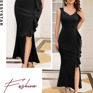 Womens V Neck Sleeveless Evening Dress features a stunning V Neck design, making it the perfect choice for formal occasions, proms,wedding, or cocktail parties