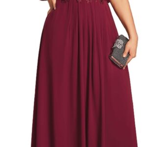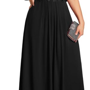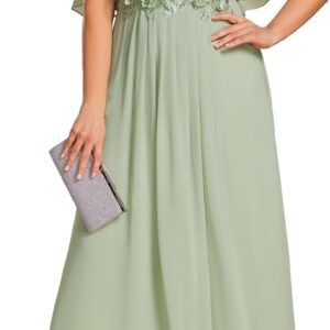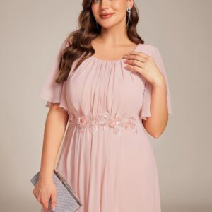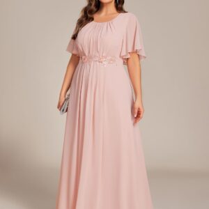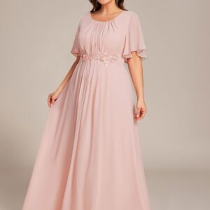 Ever-Pretty Plus Women’s Round Neck Appliques Chiffon Short Sleeves Floor Length Plus Size Formal Dresses Evening Gowns