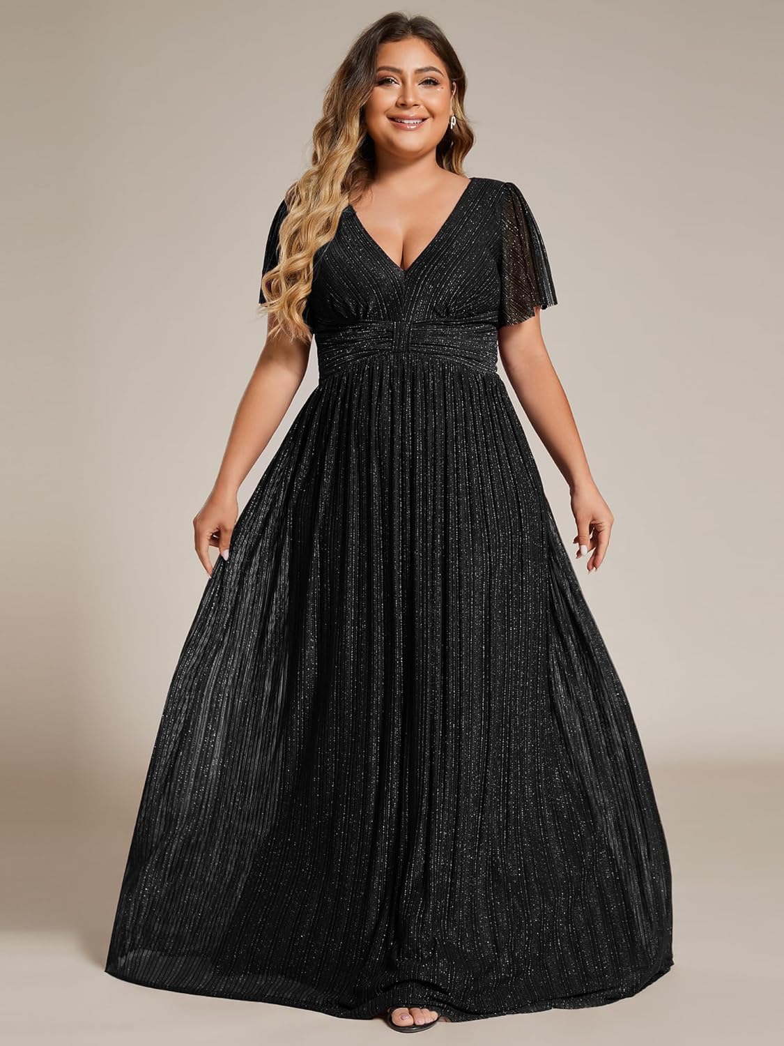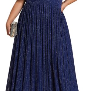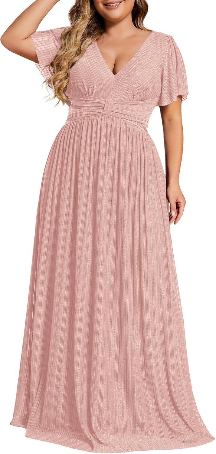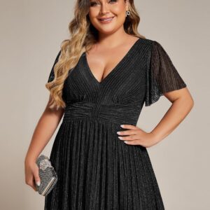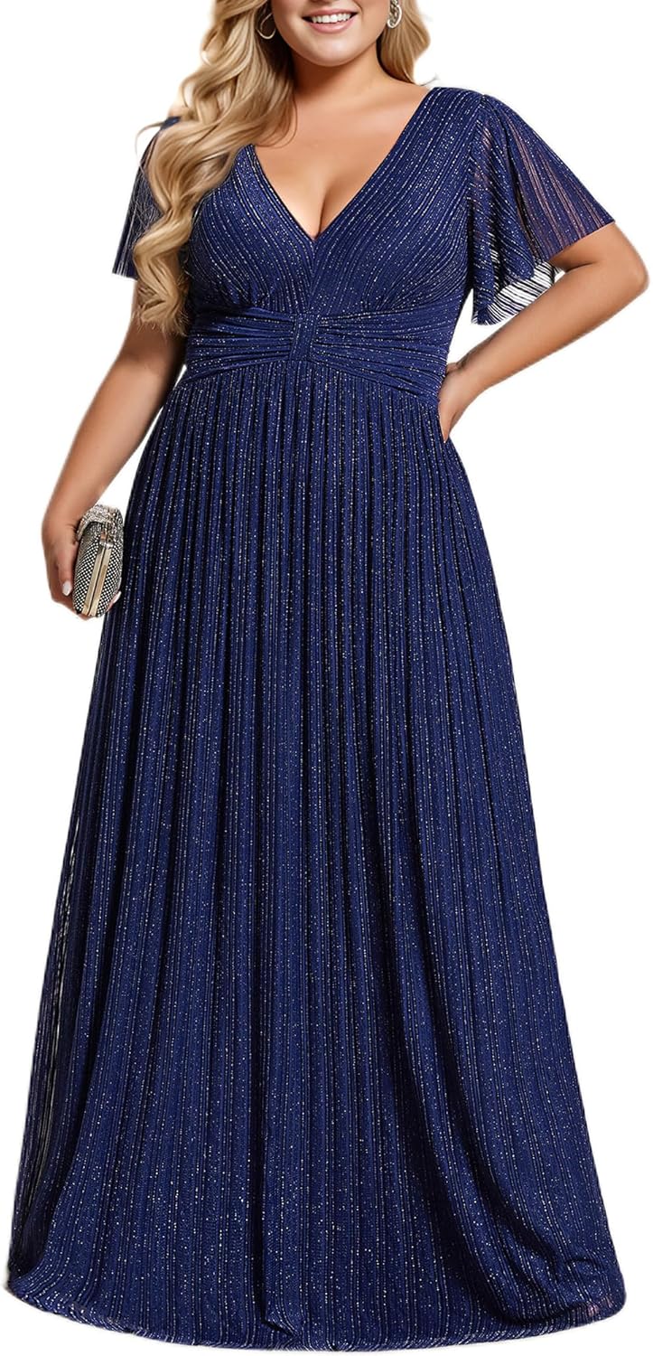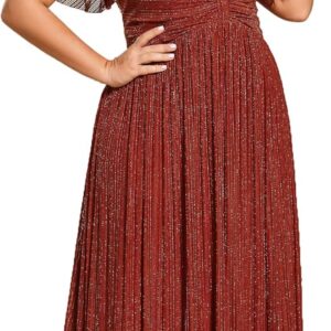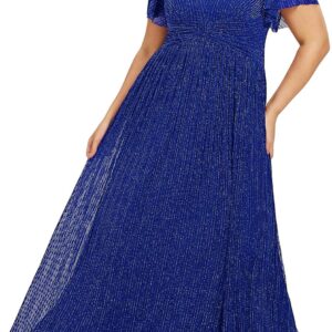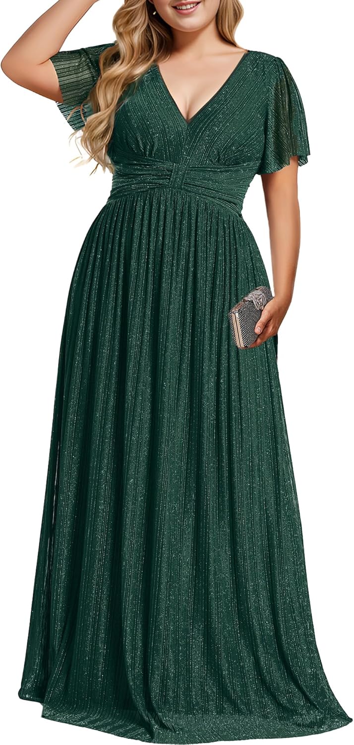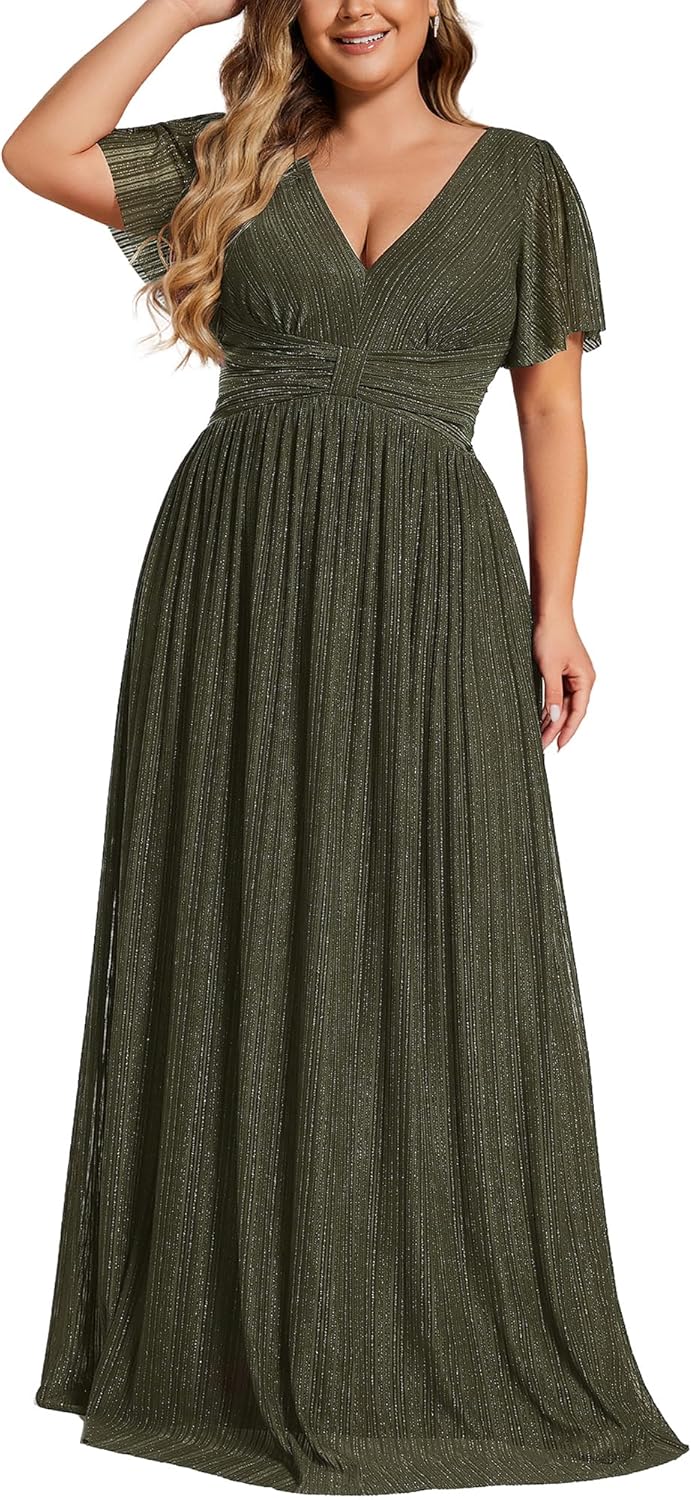 Ever-Pretty Women’s A Line V Neck Glitter Short Sleeves Pleated Plus Size Formal Evening Dresses 11961-DA