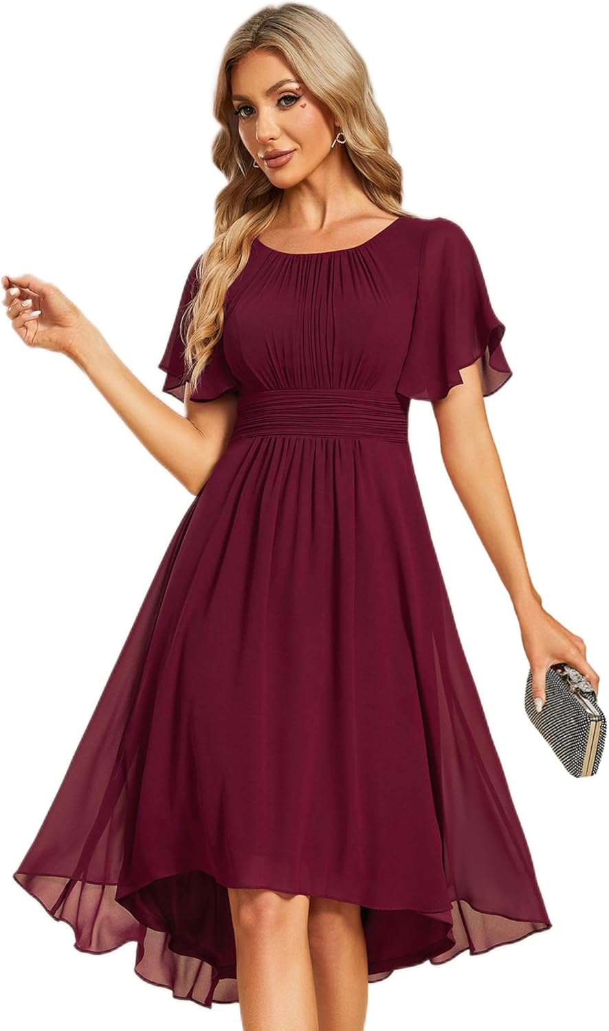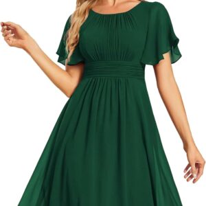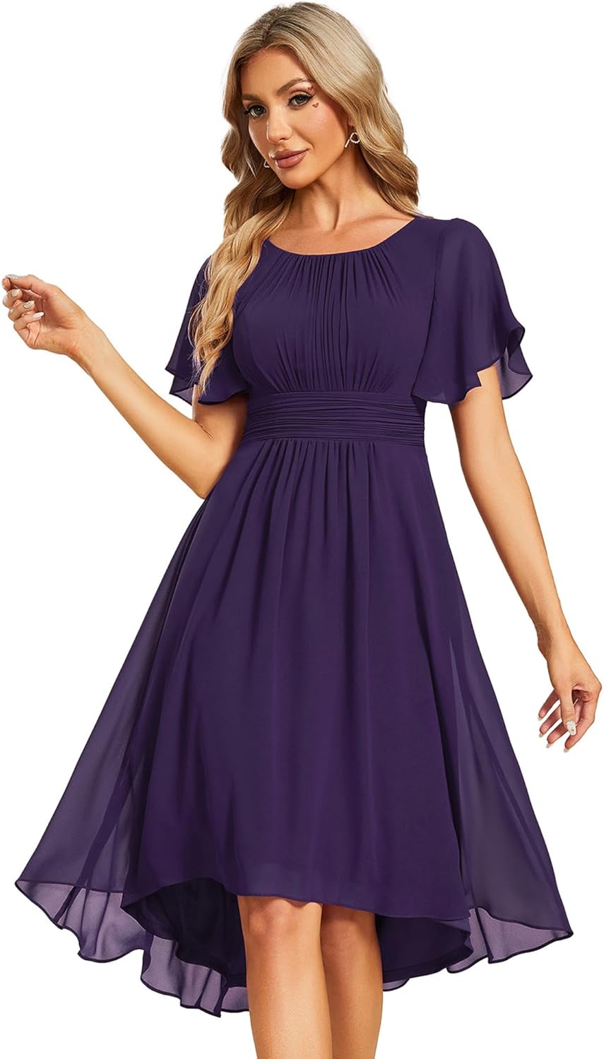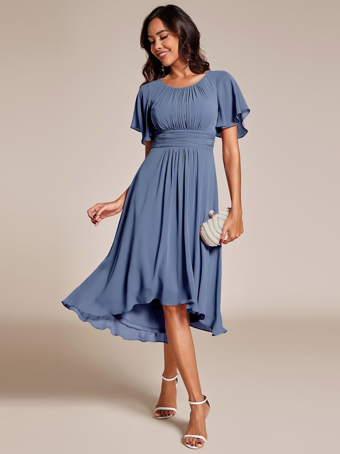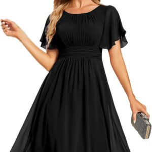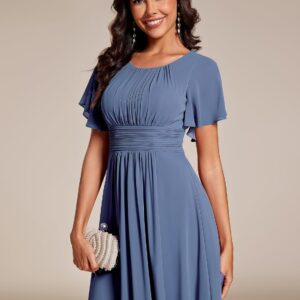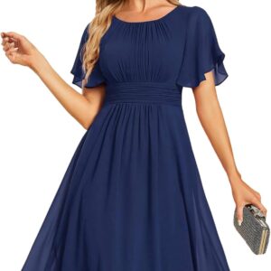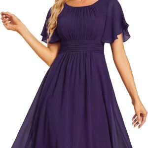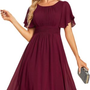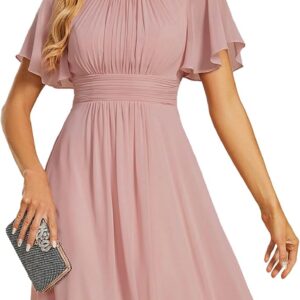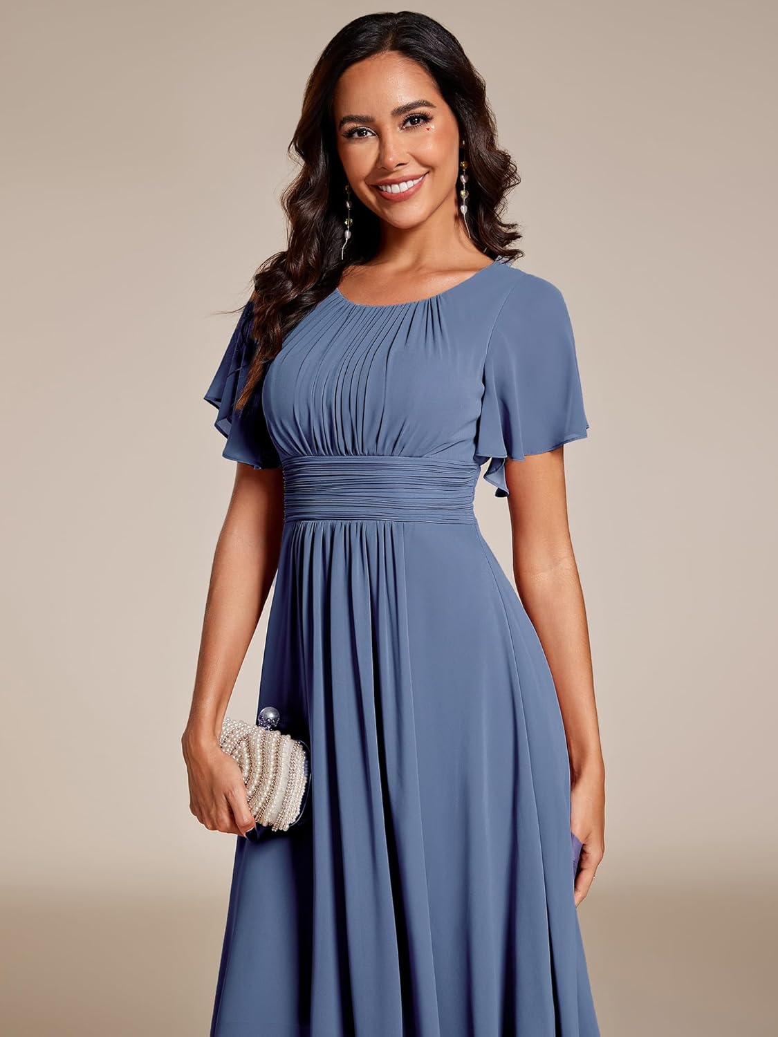 Ever-Pretty Women’s Chiffon Crew Neck Pleated Waist Short Sleeve Wedding Guest Dress 02053