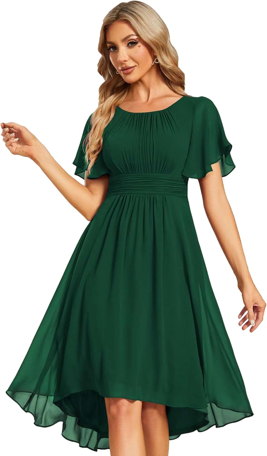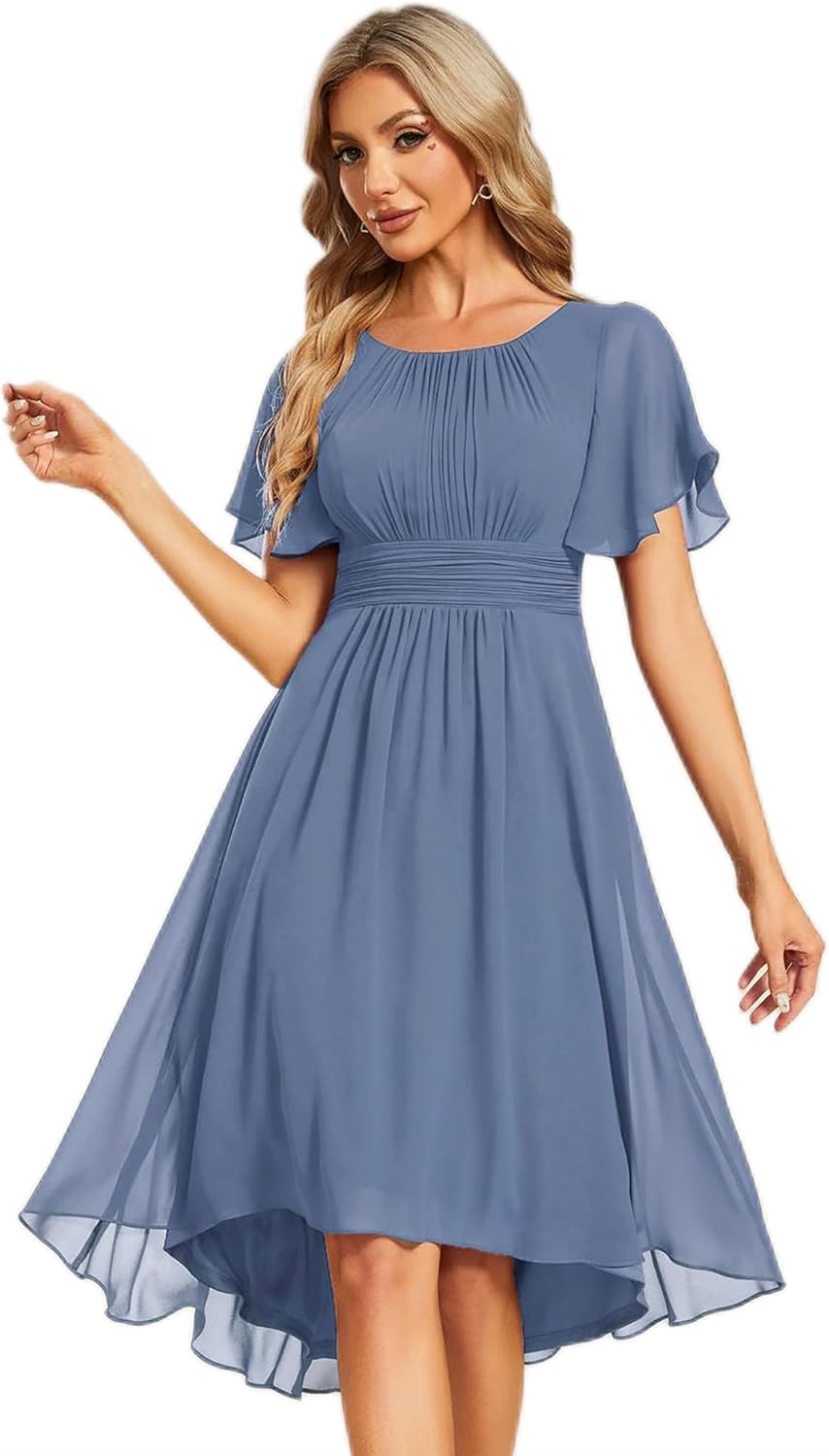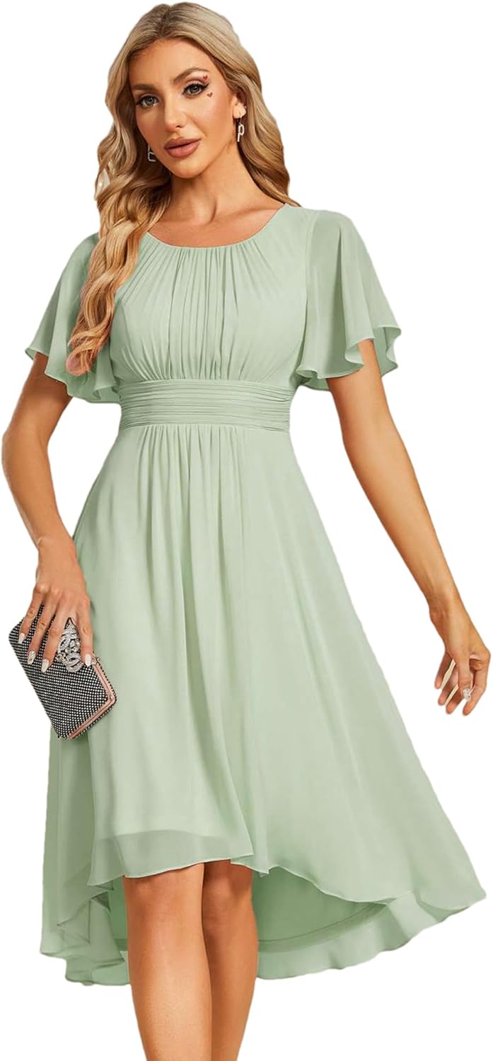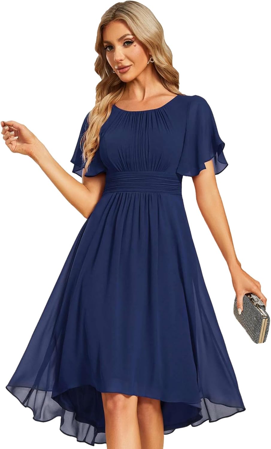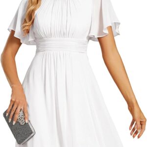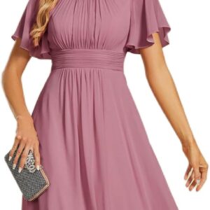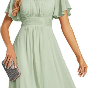 Ever-Pretty Women’s Chiffon Crew Neck Pleated Waist Short Sleeve Wedding Guest Dress 02053