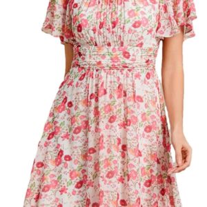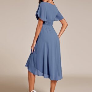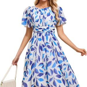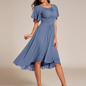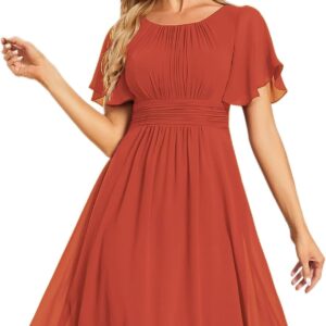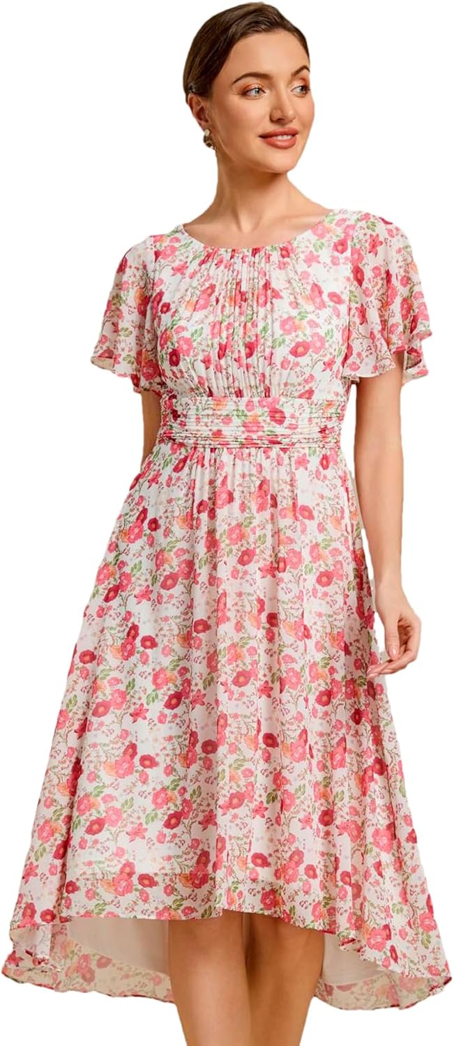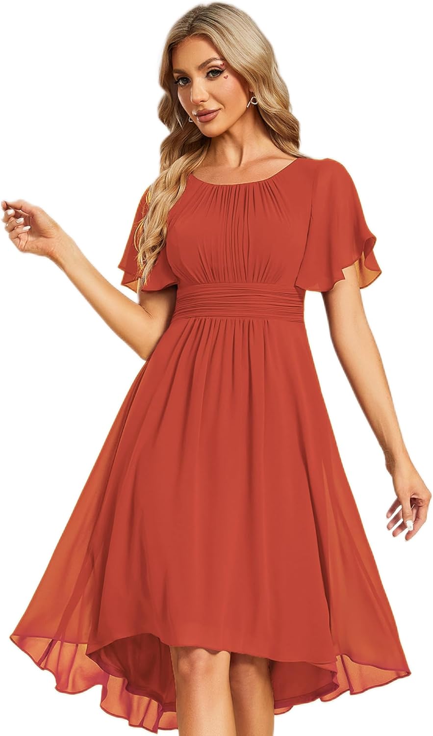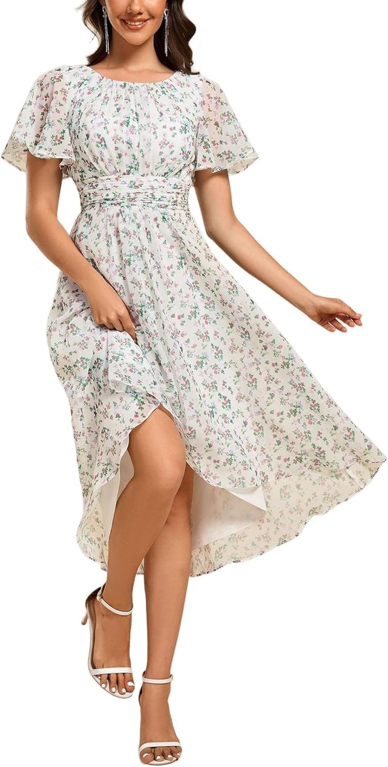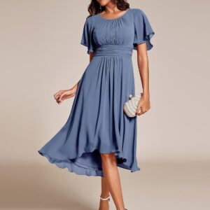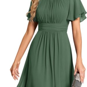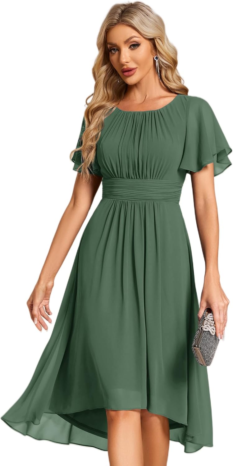 Ever-Pretty Women’s Chiffon Crew Neck Pleated Waist Short Sleeve Wedding Guest Dress 02053