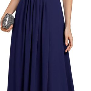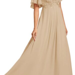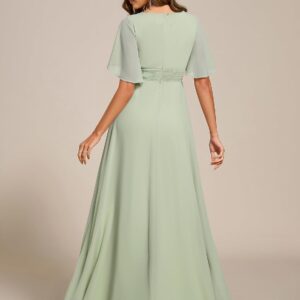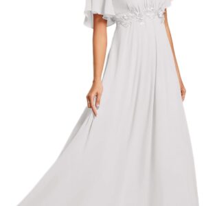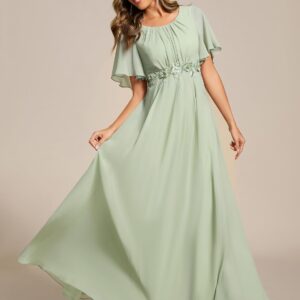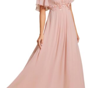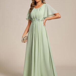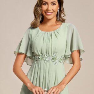 Ever-Pretty Women’s Classic Round Neck Pleated Short Sleeves Chiffon Appliques Floor Length A Line Formal Evening Dresses