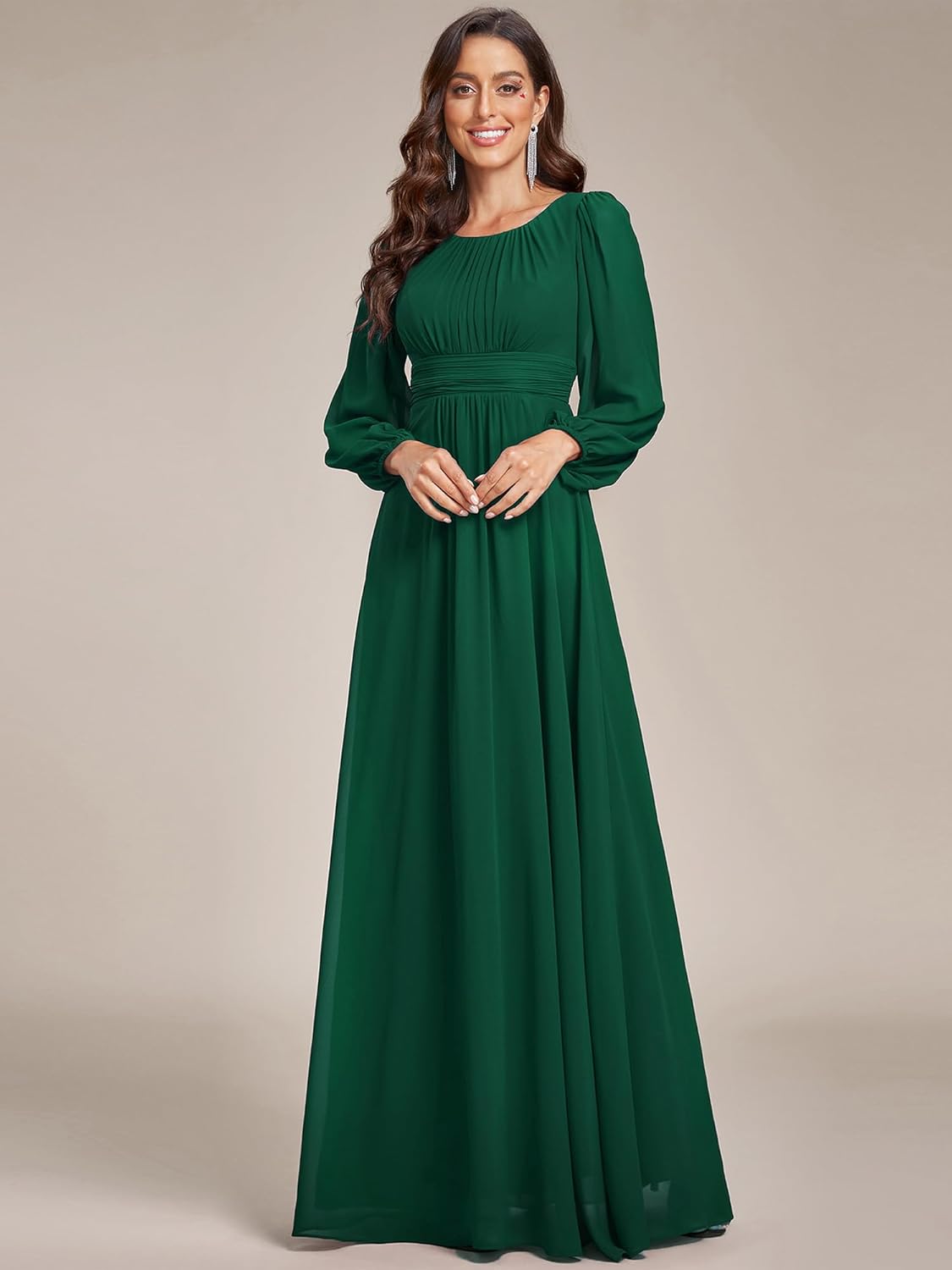 Ever-Pretty Women’s Crewneck Long Lantern Sleeves Floor Length A-Line Pleated Chiffon Formal Dress 0106B