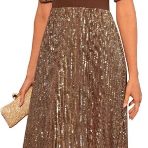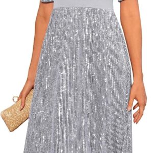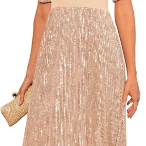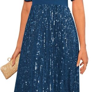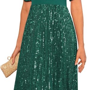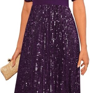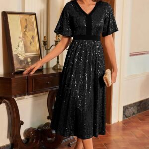These sequin dresses for women feature A-Line, empire waist, short sleeve, v-neck, high waist. The formal dress provide you a feminine and elegant silhouette. The sparkly glitter dress is easily matched with heels or accessories to create gorgeous look.