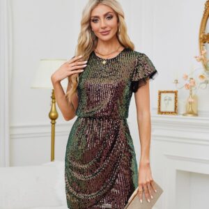 Shimmer Ruffle Sleeve Glitter Dress for Women Cocktail Party Dress