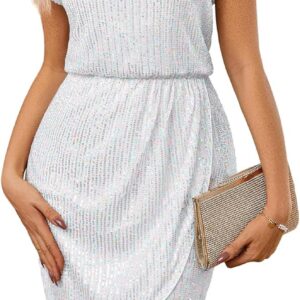 Cap Short Sleeve Sparkle Dress for Women Cocktail Prom Wedding Guest Wrap Dress