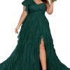 GRACE KARIN Women’s V Neck Ruffle Sleeve Summer Dress 2025 Split Flowy Tiered Midi Dress Wedding Guest Cocktail Dresses
