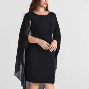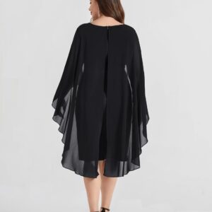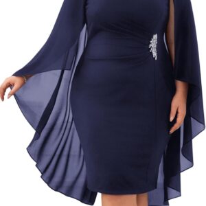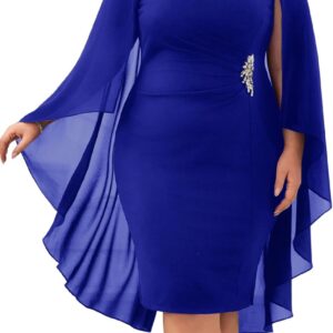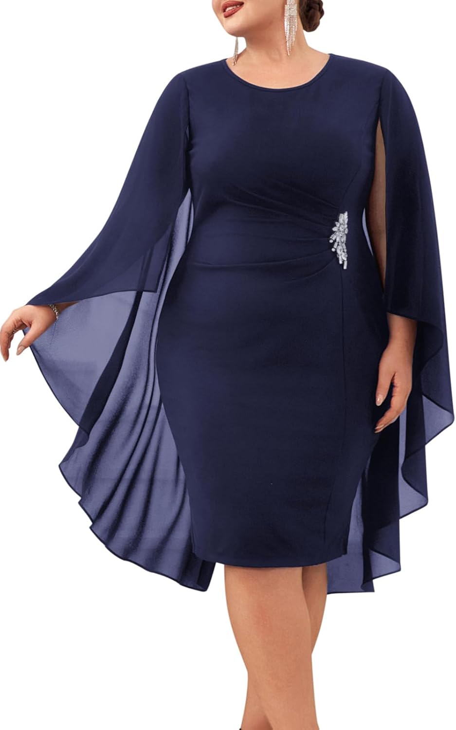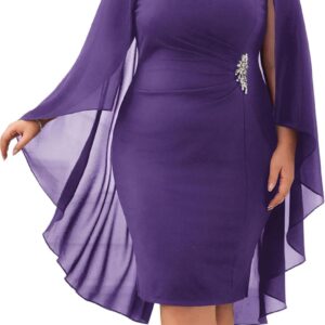 Plus Size Chiffon Mother of The Bride Dress Business Cape Sleeve Midi Dress