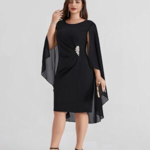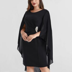 2024 Fashion Womens Plus Size Cocktail Dress with Removable Rhinestones