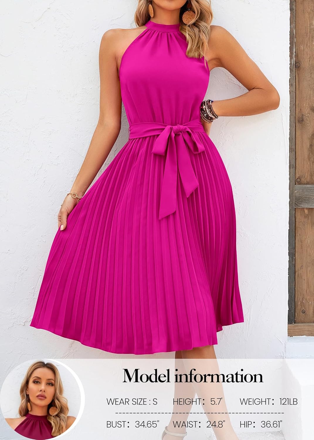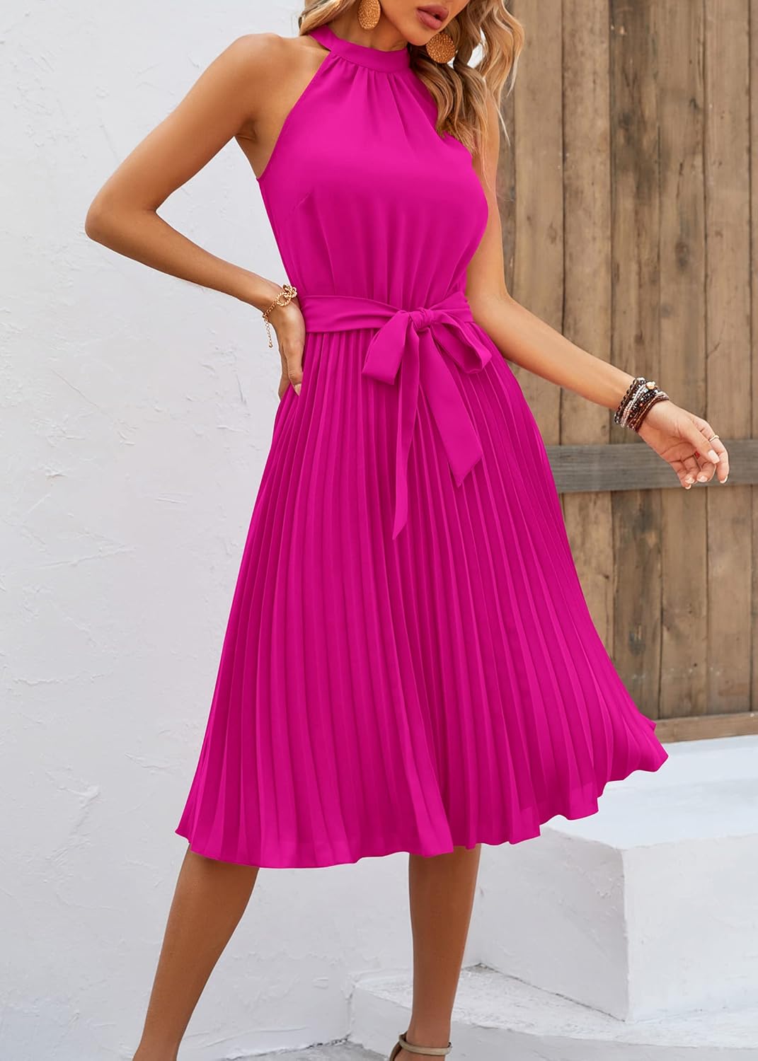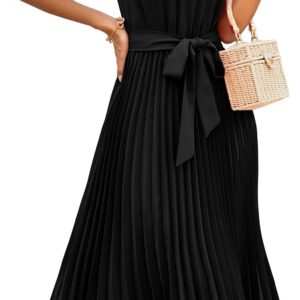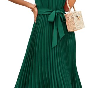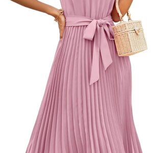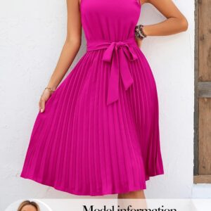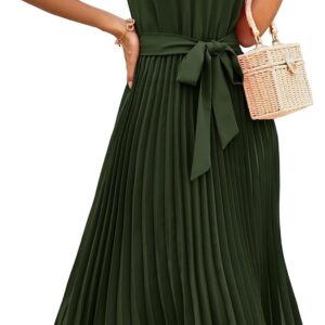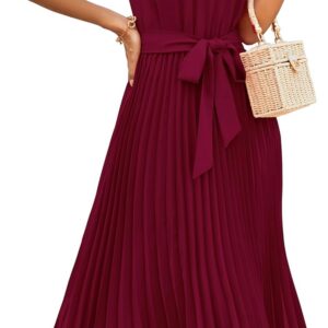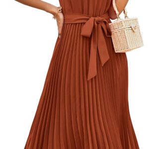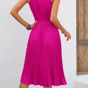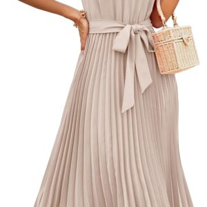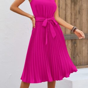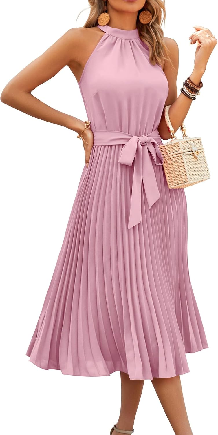 KIRUNDO Women’s 2025 Summer Sleeveless Halter Neck Pleated Midi Cocktail Dresses A Line Flowy Beach Sun Dress with Belt