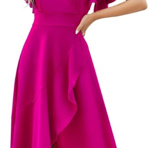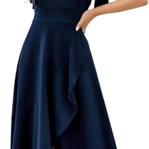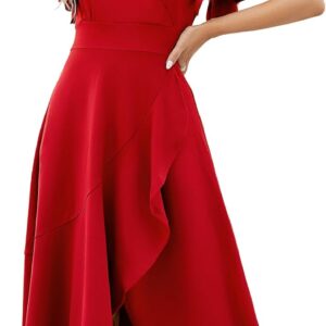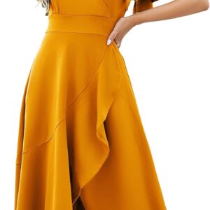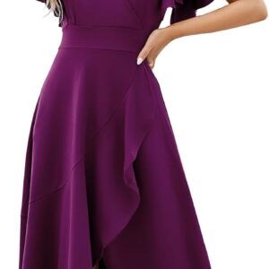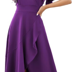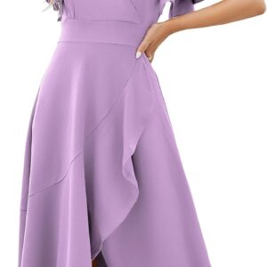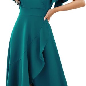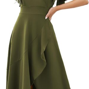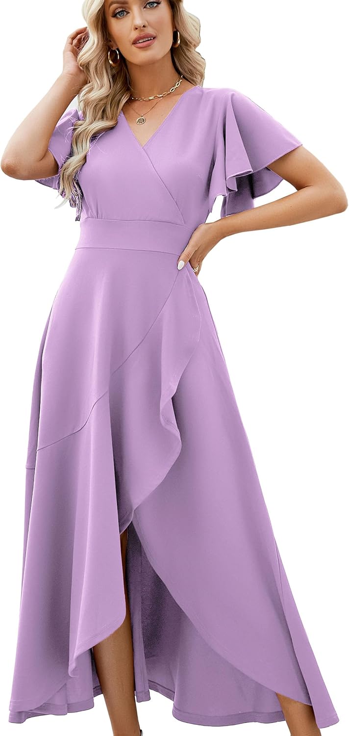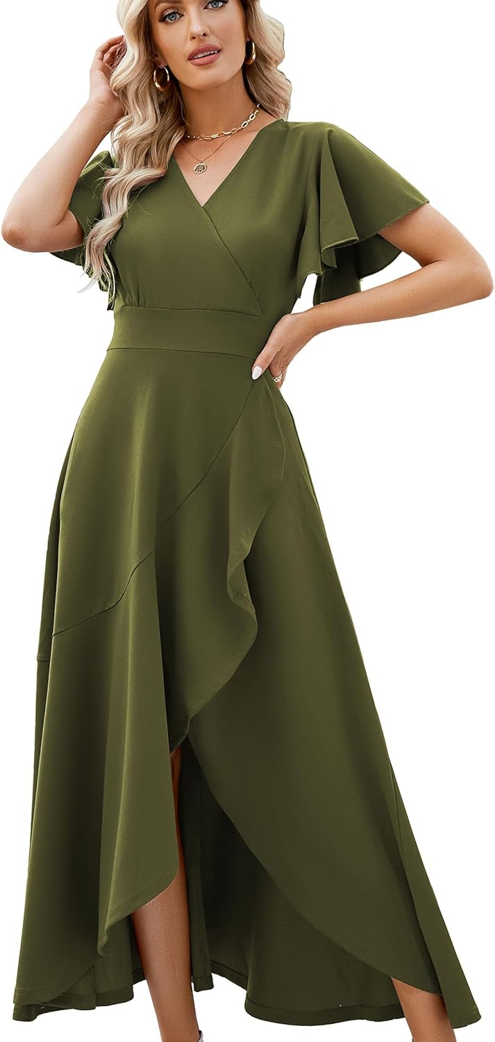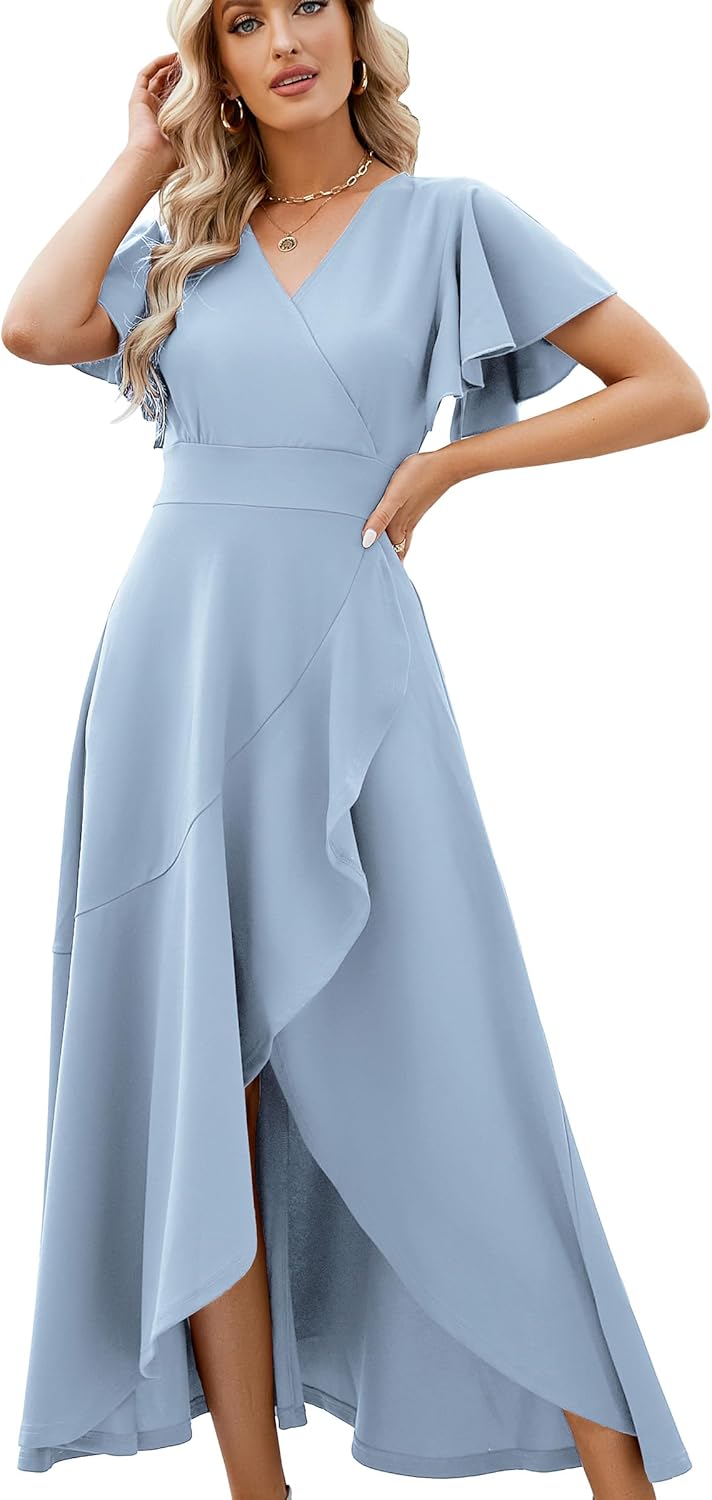Long Black Formal Dresses for Women Gowns Evening Party Cocktail Dress,Split Elegant V Neck Wrap Ruffle Wedding Guest Dresses