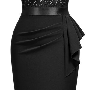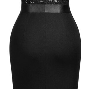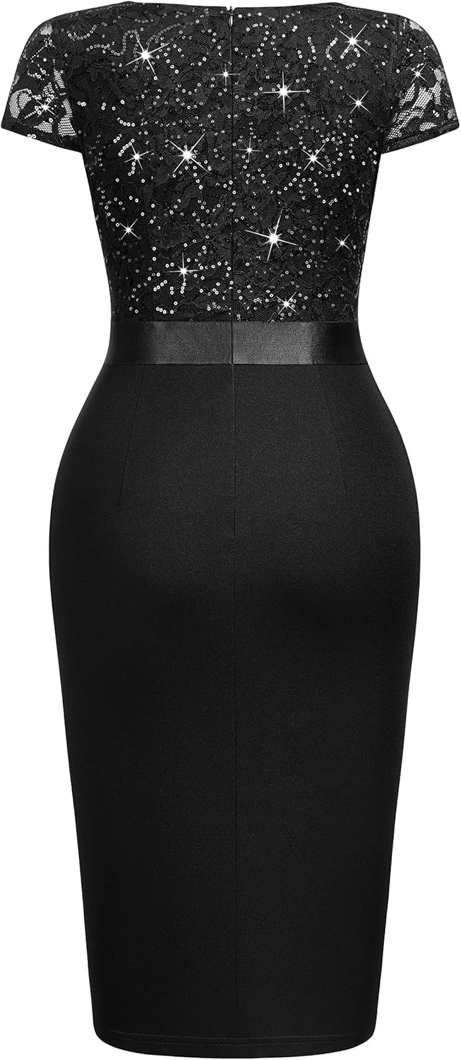 Elegant Square Neck Glitter Sequin Lace Cocktail Dress