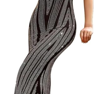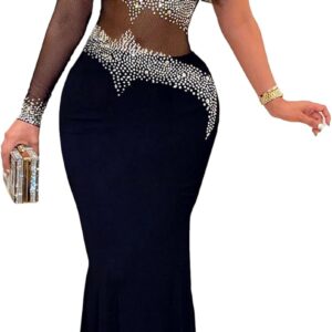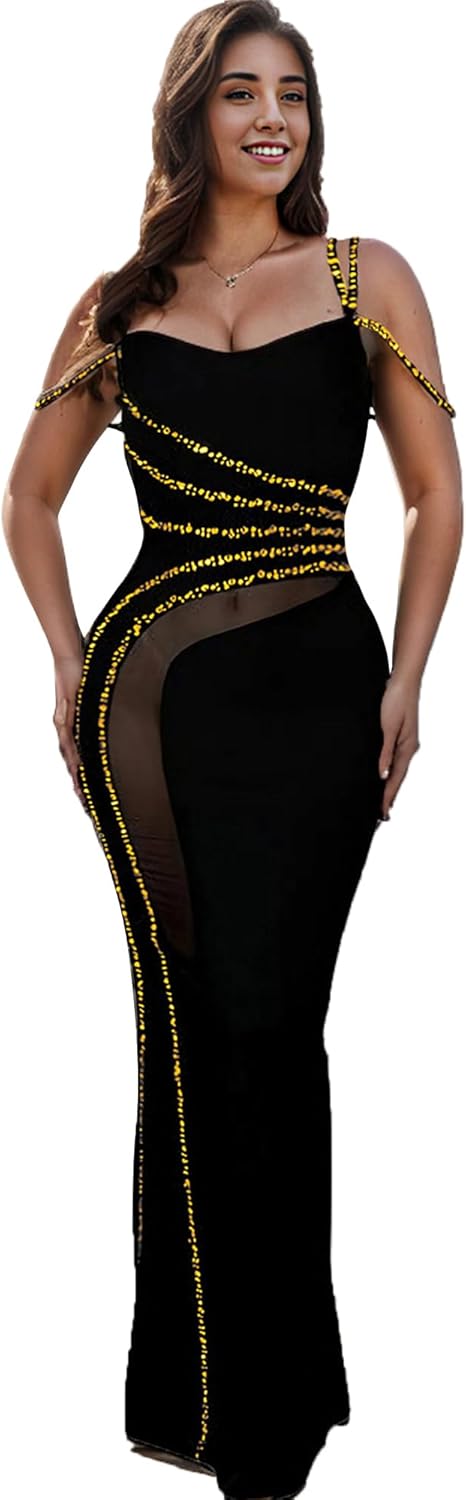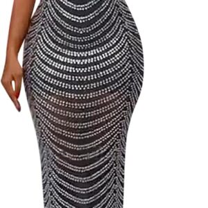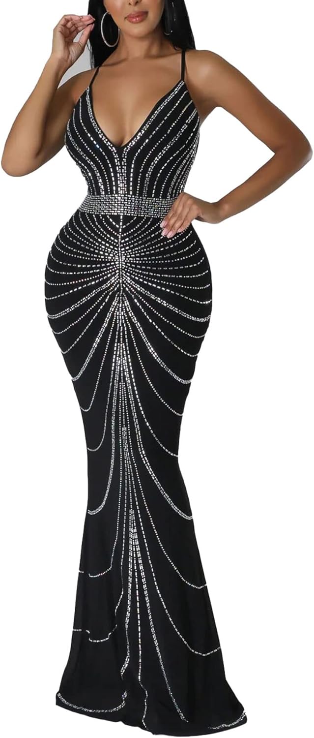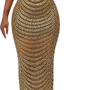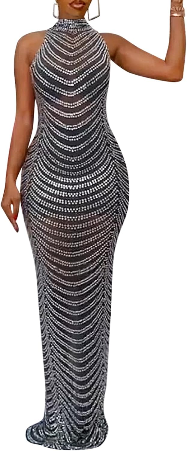 Nagfar Women's Rhinestone Sexy Dress, Halter Slit Long Dresses Birthday Party Club Night Gown