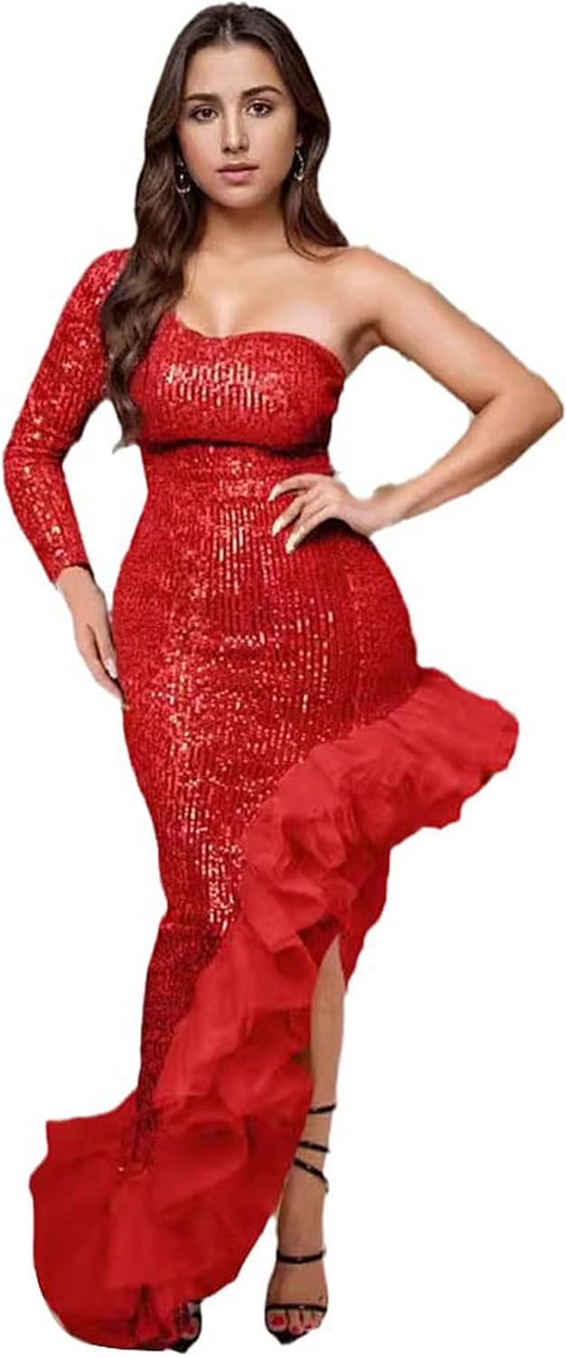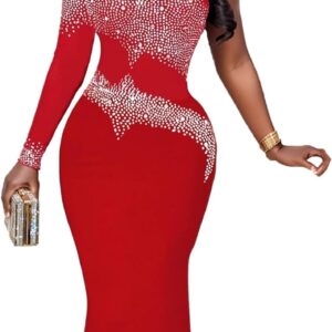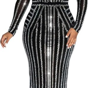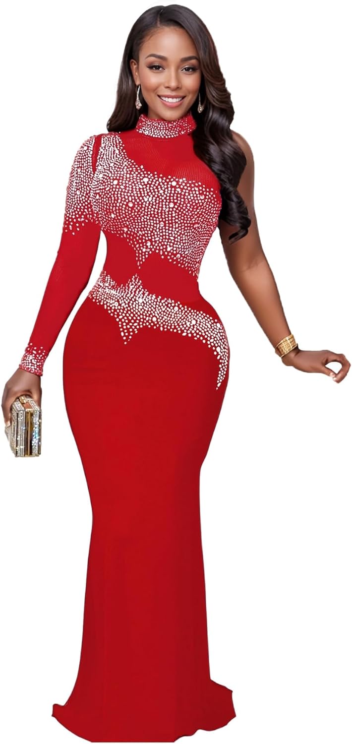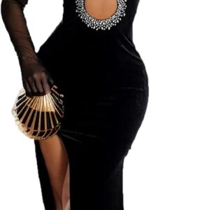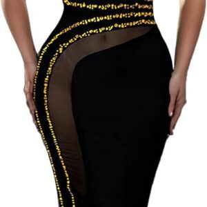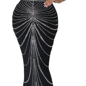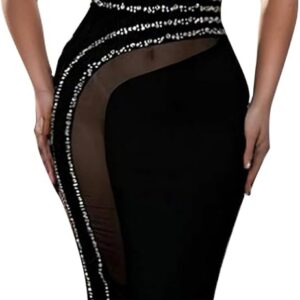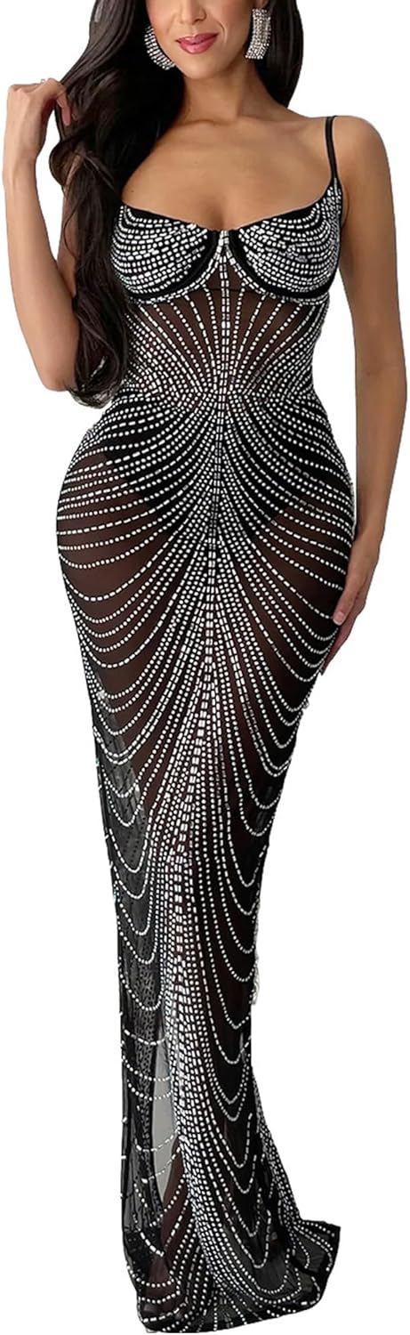 Nagfar Women's Rhinestone Sexy Dress, Halter Slit Long Dresses Birthday Party Club Night Gown