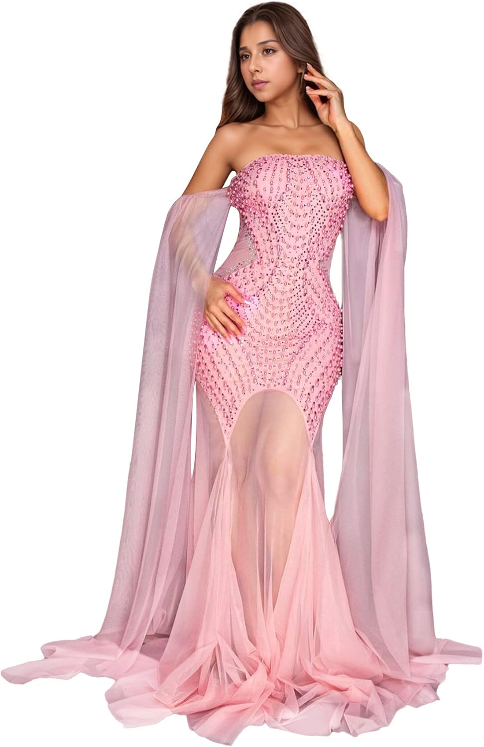Rhinestone Embellished Formal Gowns and Evening Dresses for Women Beach Wedding Guest Dress Formal Evening Gown Mermaid Clothes
