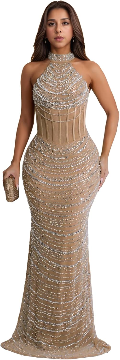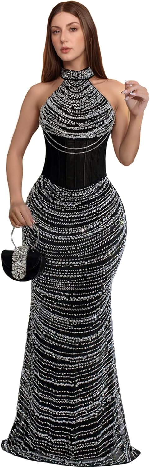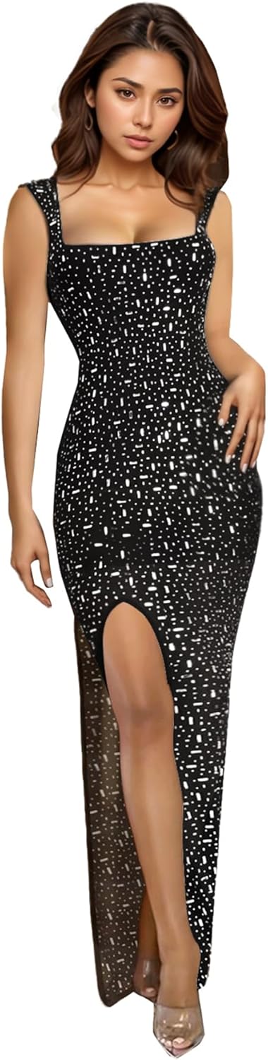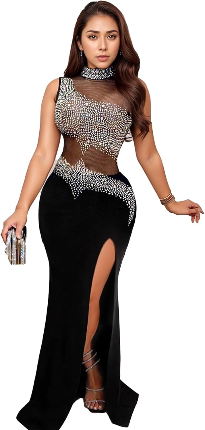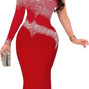 PORRCEY Women's Sexy Elegant Rhinestone Bodycon Party Club Night Dresses Hot …