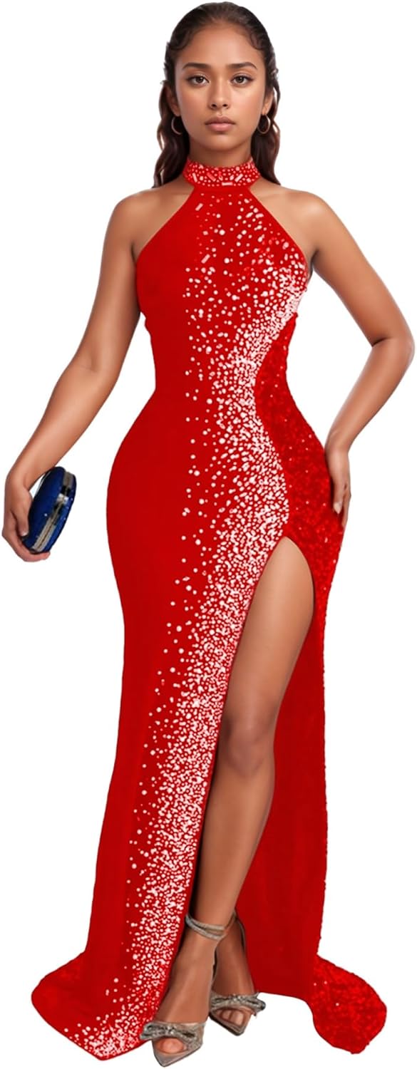 PORRCEY Women's Sexy Elegant Sparkly Sequins Evening Dress Party Club Night O…