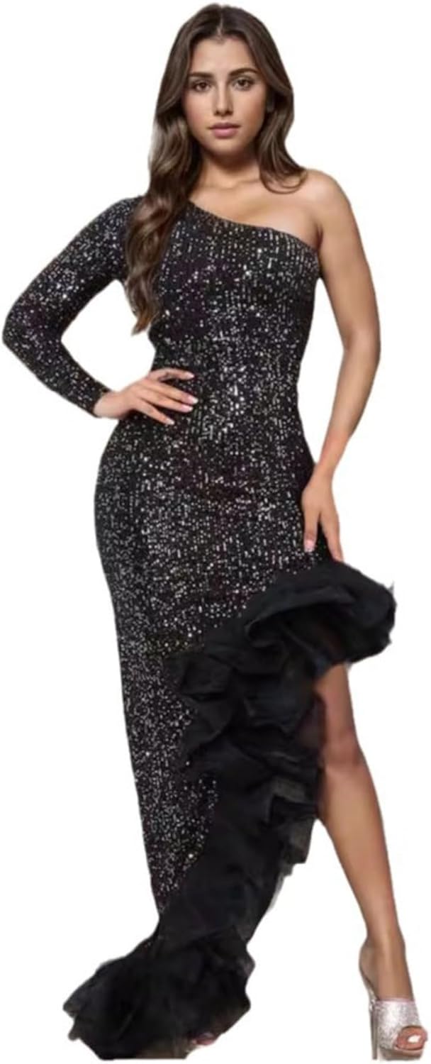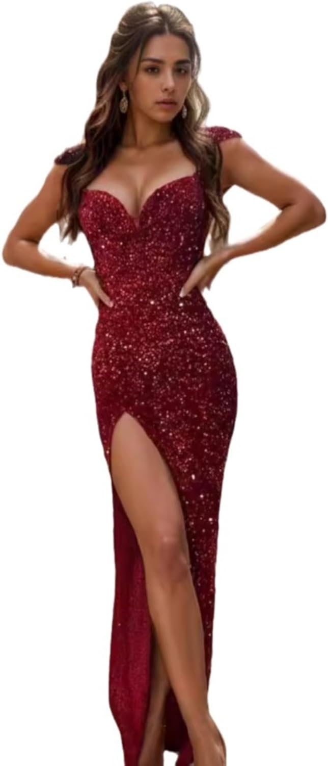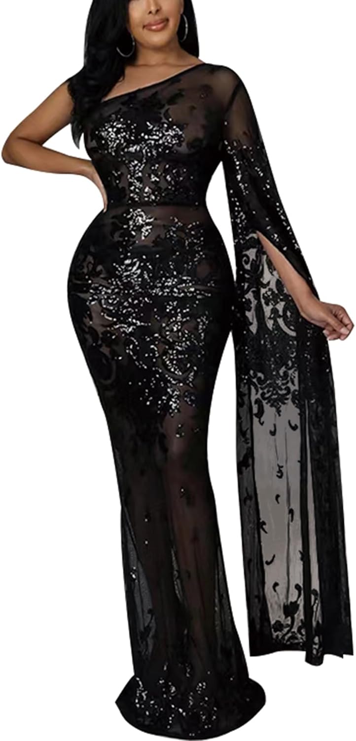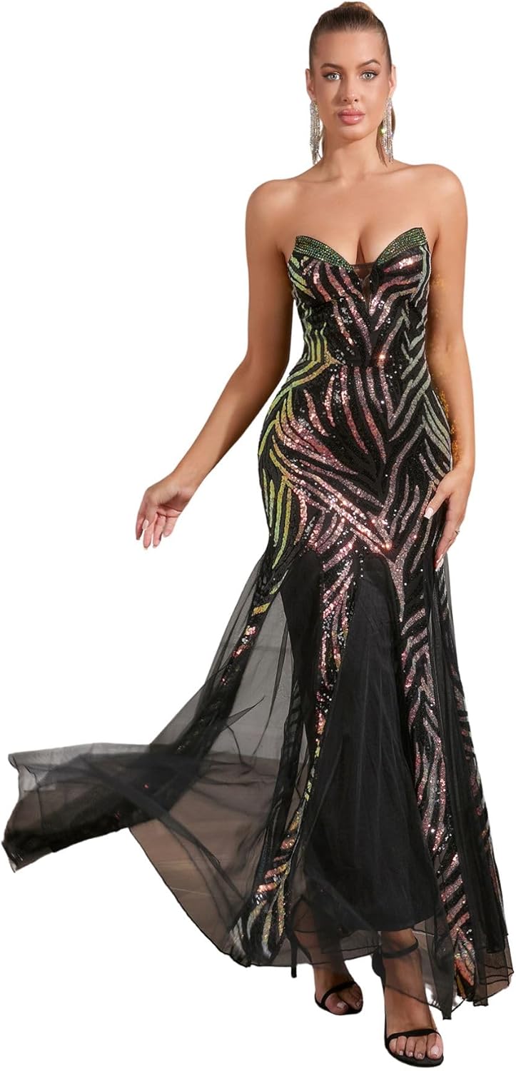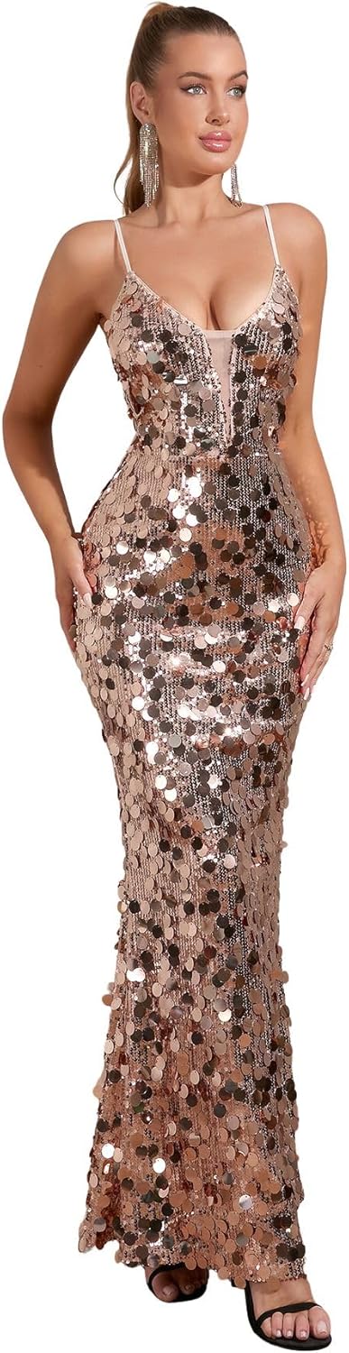 PORRCEY Women’s Sexy Elegant Sparkly Sequins Evening Dress Party Club Night Outfits