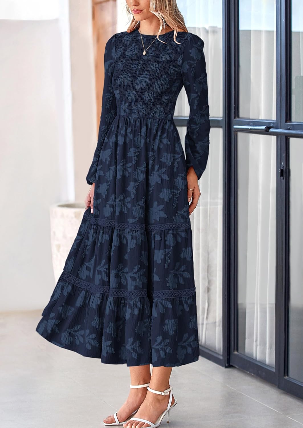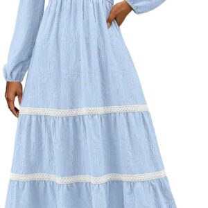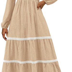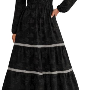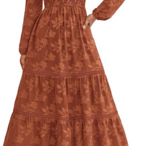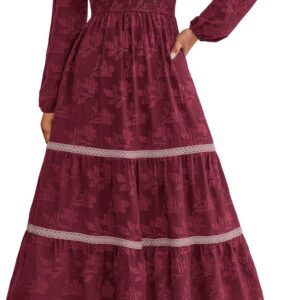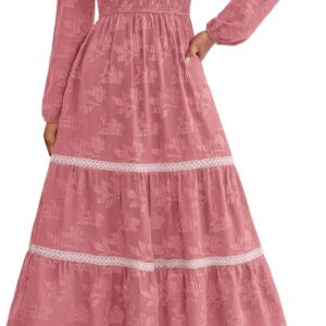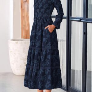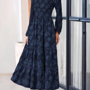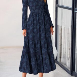 PRETTYGARDEN Long Sleeve Dress for Women 2025 Fall Elegant Modest Floral Boho Smocked Flowy Wedding Guest Midi Dresses