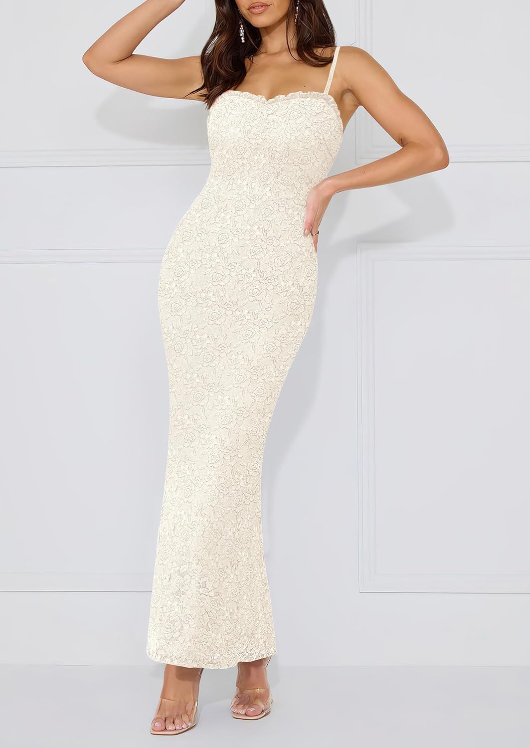 PRETTYGARDEN Summer Dresses for Women 2025 Lace Floral Bodycon Semi Formal Party Wedding Guest Boho Maxi Dress