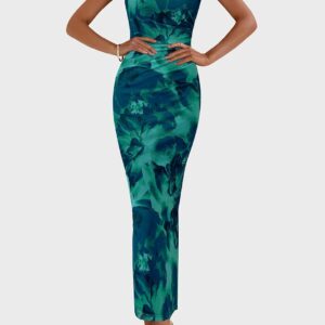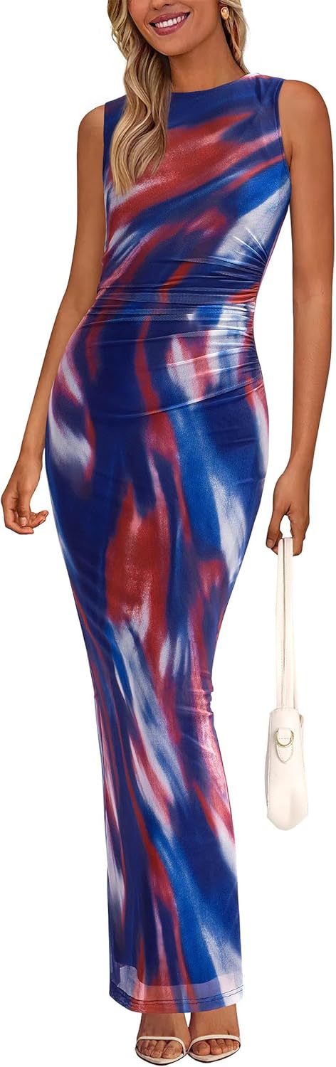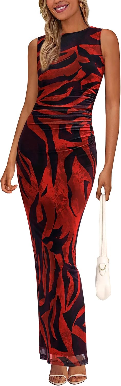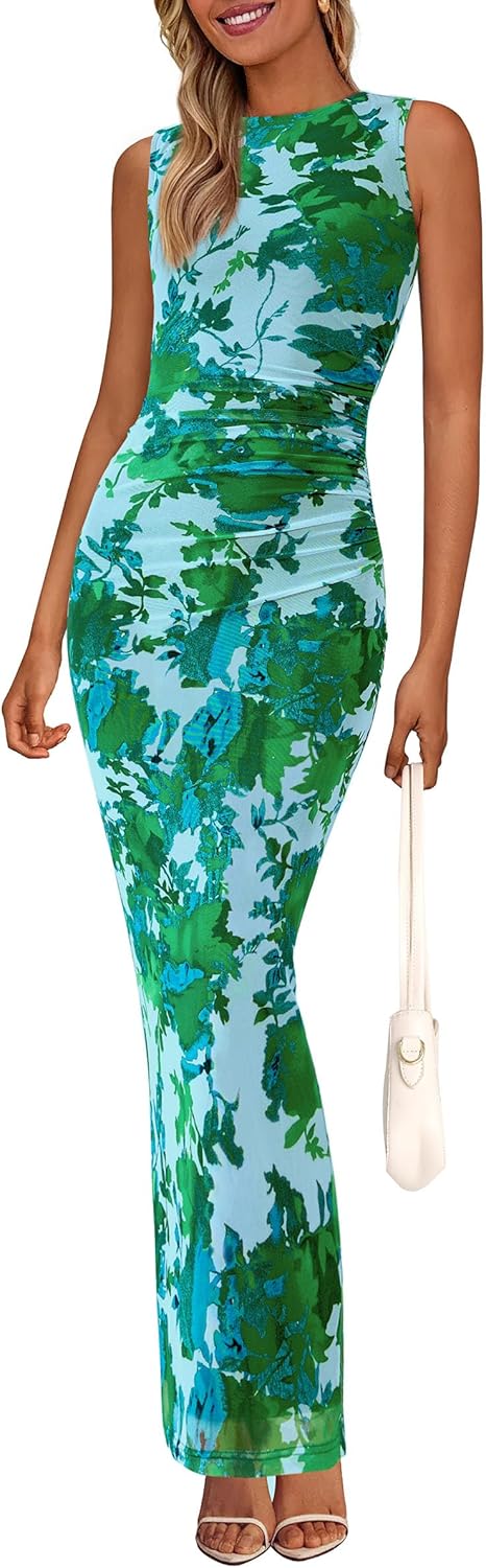 PRETTYGARDEN Wedding Guest Dresses for Women 2025 Summer Spring Floral Bodycon Sleeveless Mesh Maxi Long Dress