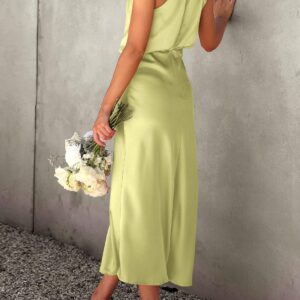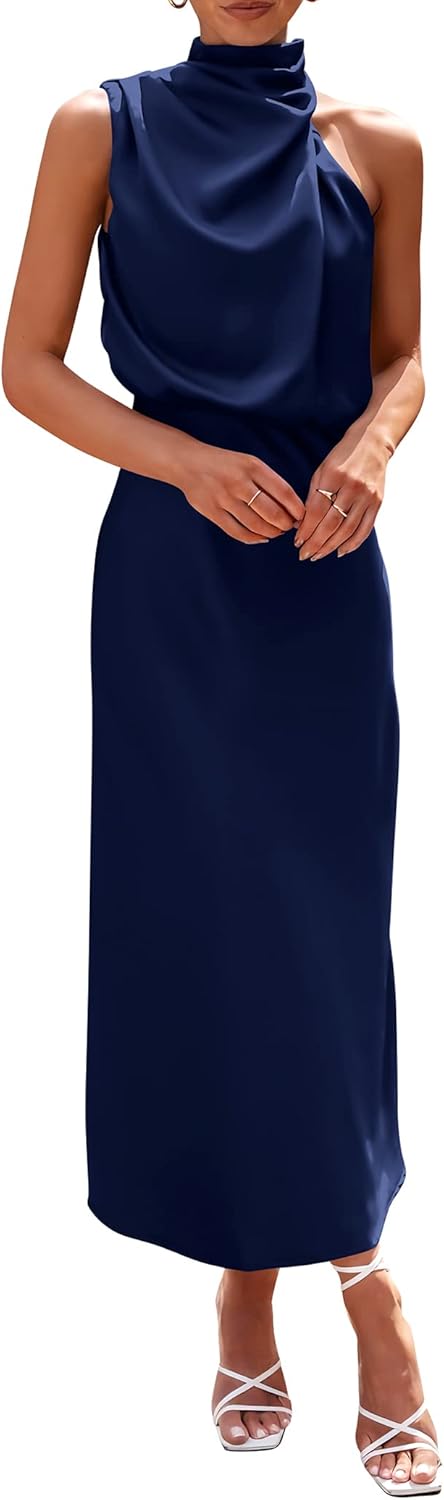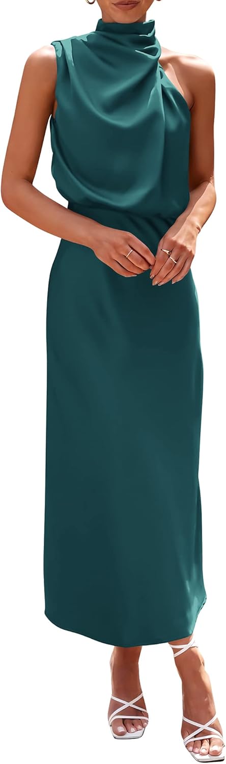 PRETTYGARDEN Women’s 2025 Summer Satin Dress Elegant Sleeveless Mock Neck Cocktail Party Maxi Dresses