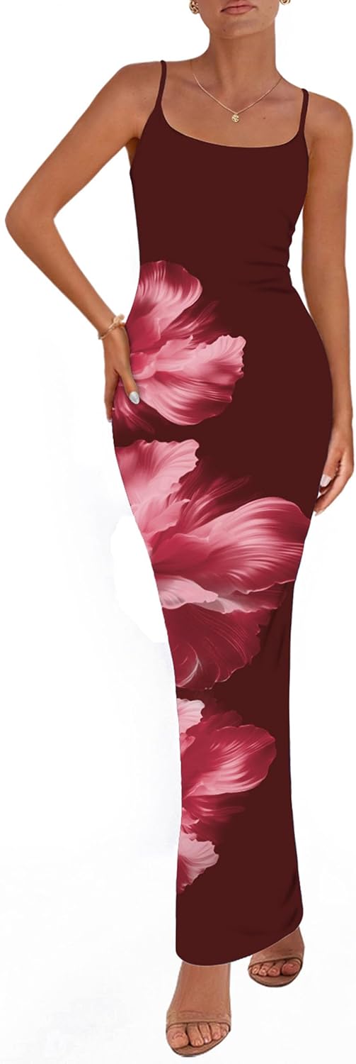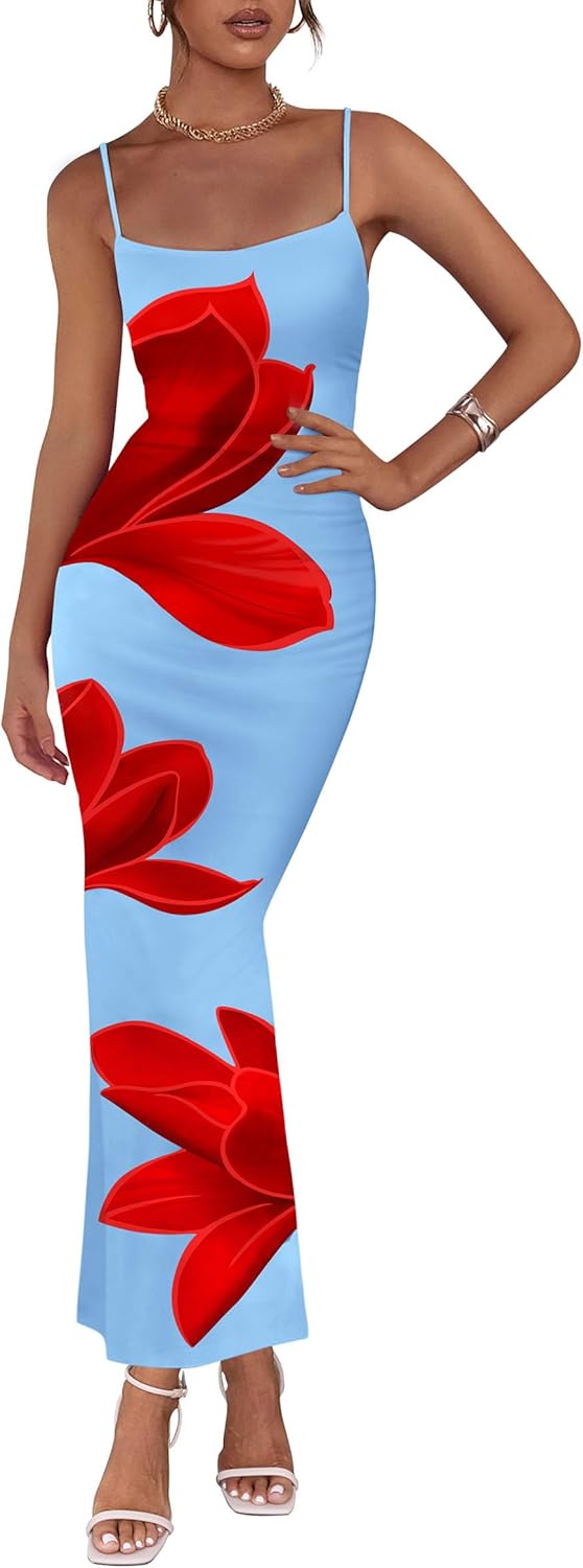 PRETTYGARDEN Womens Floral Maxi Dress Summer 2025 Sexy Spaghetti Strap Slip Bodycon Mesh Beach Vacation Dresses