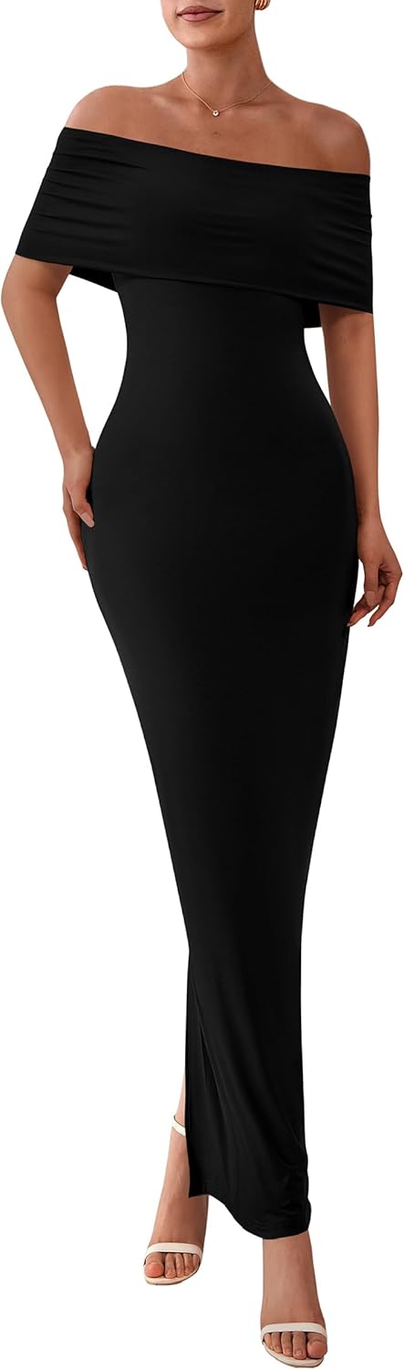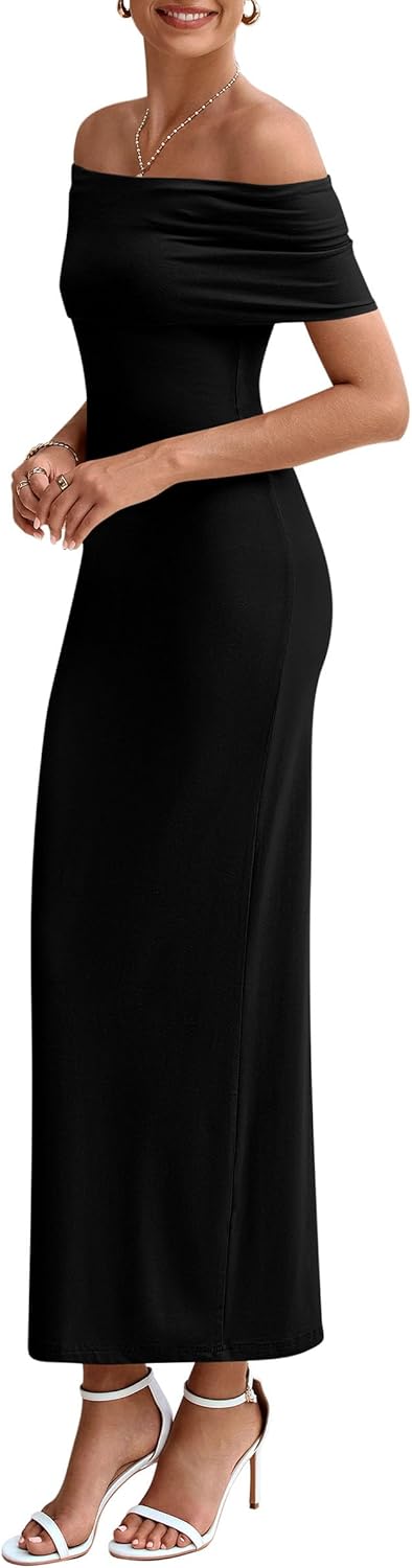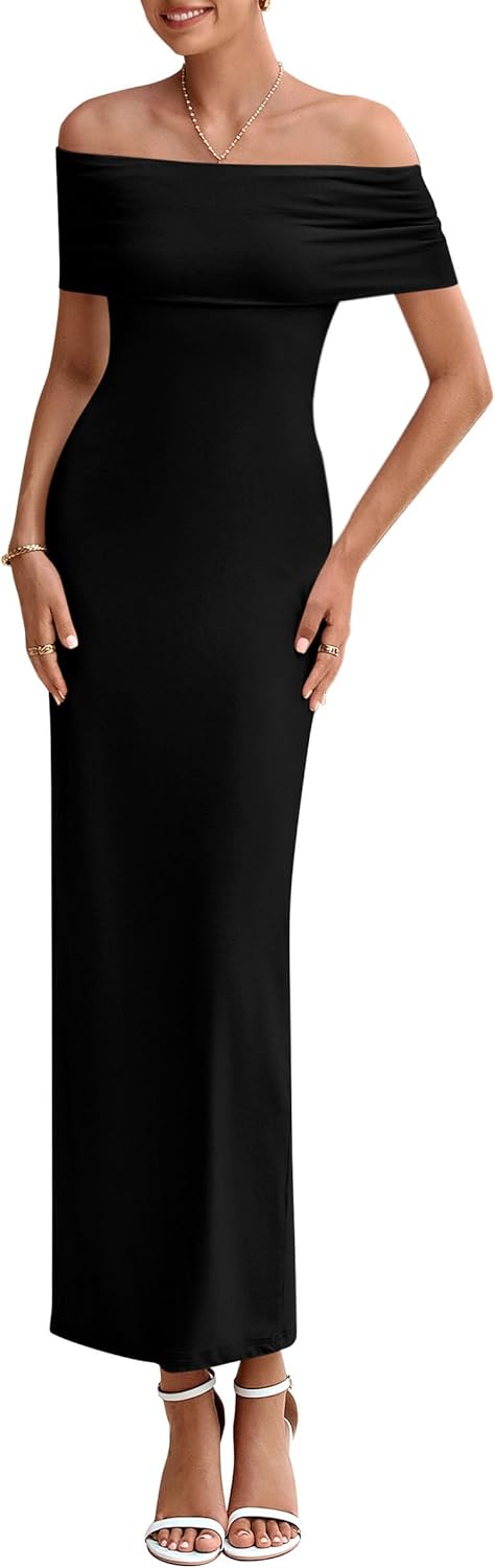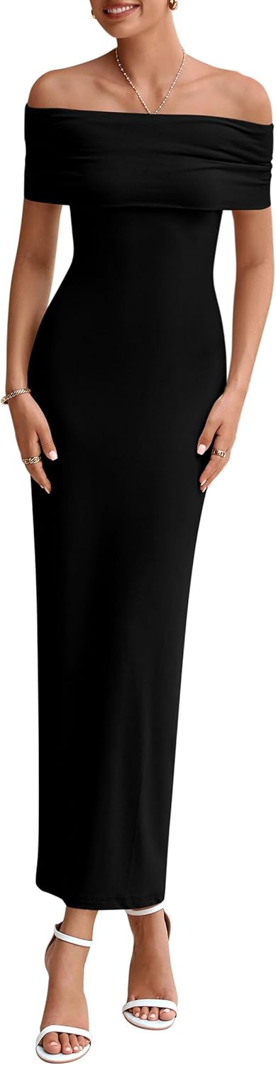 PRETTYGARDEN Women’s Off The Shoulder Maxi Dresses 2025 Summer Formal Elegant Cocktail Party Wedding Guest Long Dress