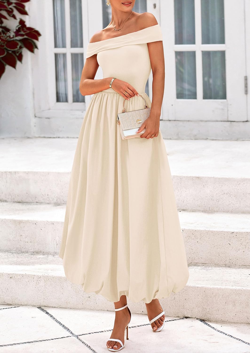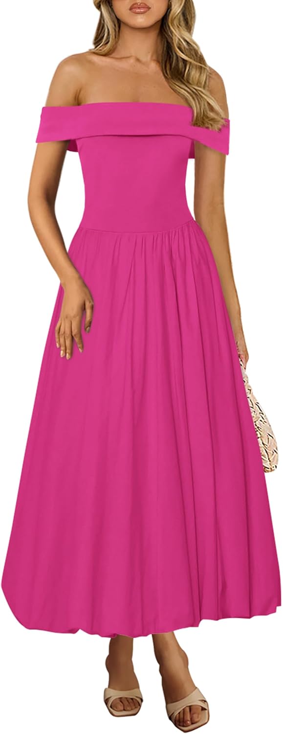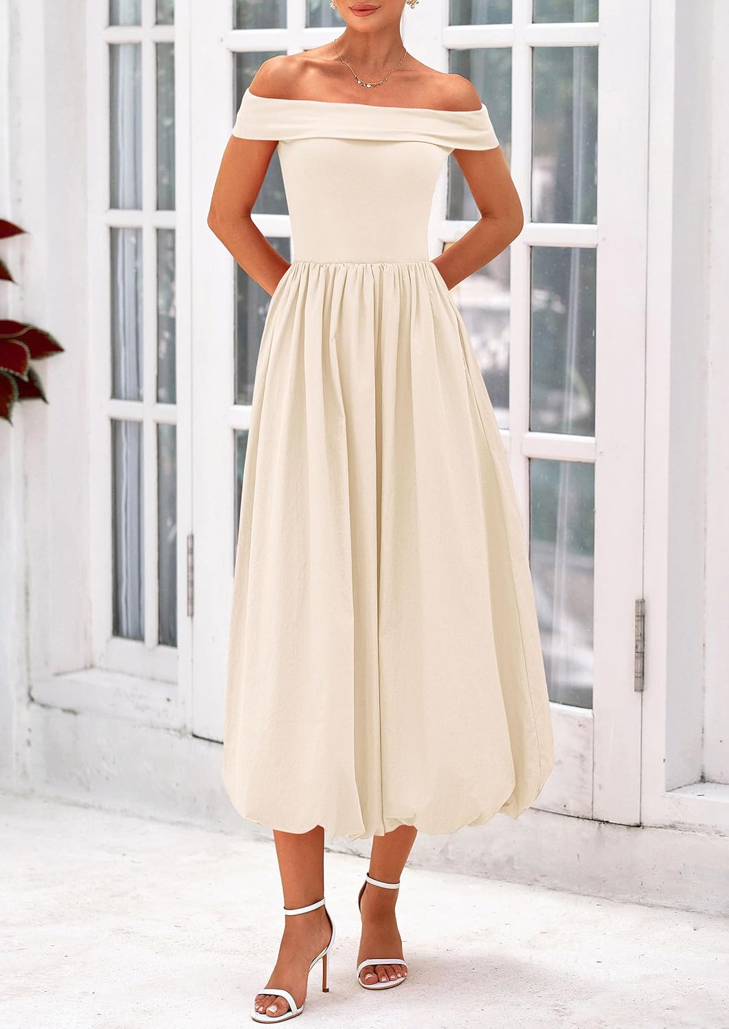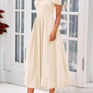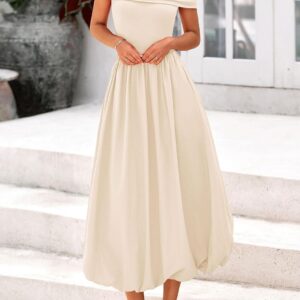 PRETTYGARDEN Womens Summer Off Shoulder Sleeveless Midi Dress Cocktail A Line Flowy Wedding Guest Dresses with Pockets