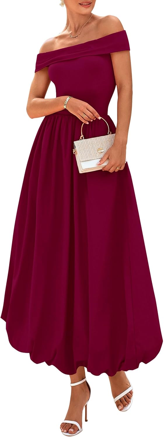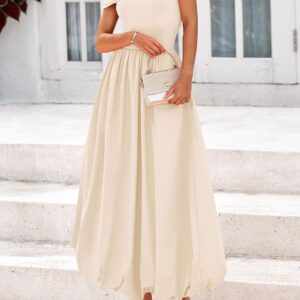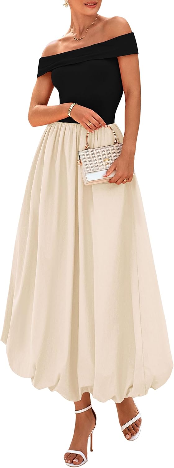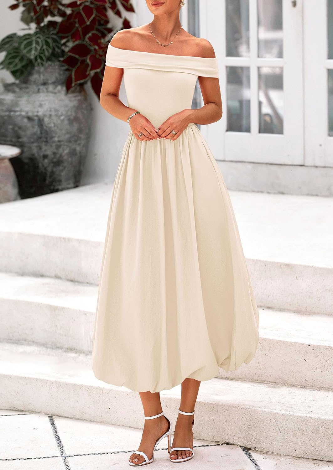 PRETTYGARDEN Womens Summer Off Shoulder Sleeveless Midi Dress Cocktail A Line Flowy Wedding Guest Dresses with Pockets