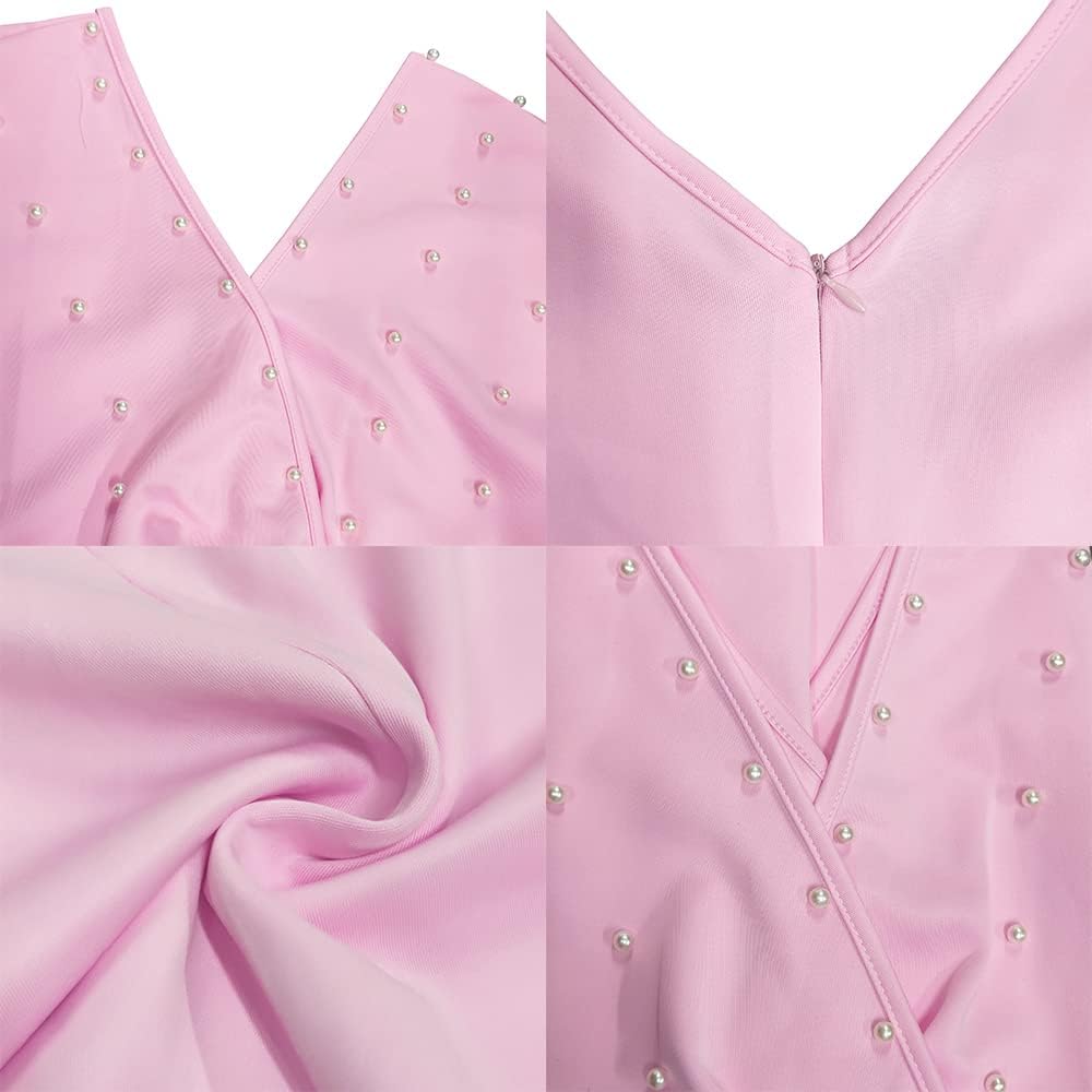 Women's Pearls V Neck Short Sleeve Tight Midi Dress High Waist Wrap Formal Dress