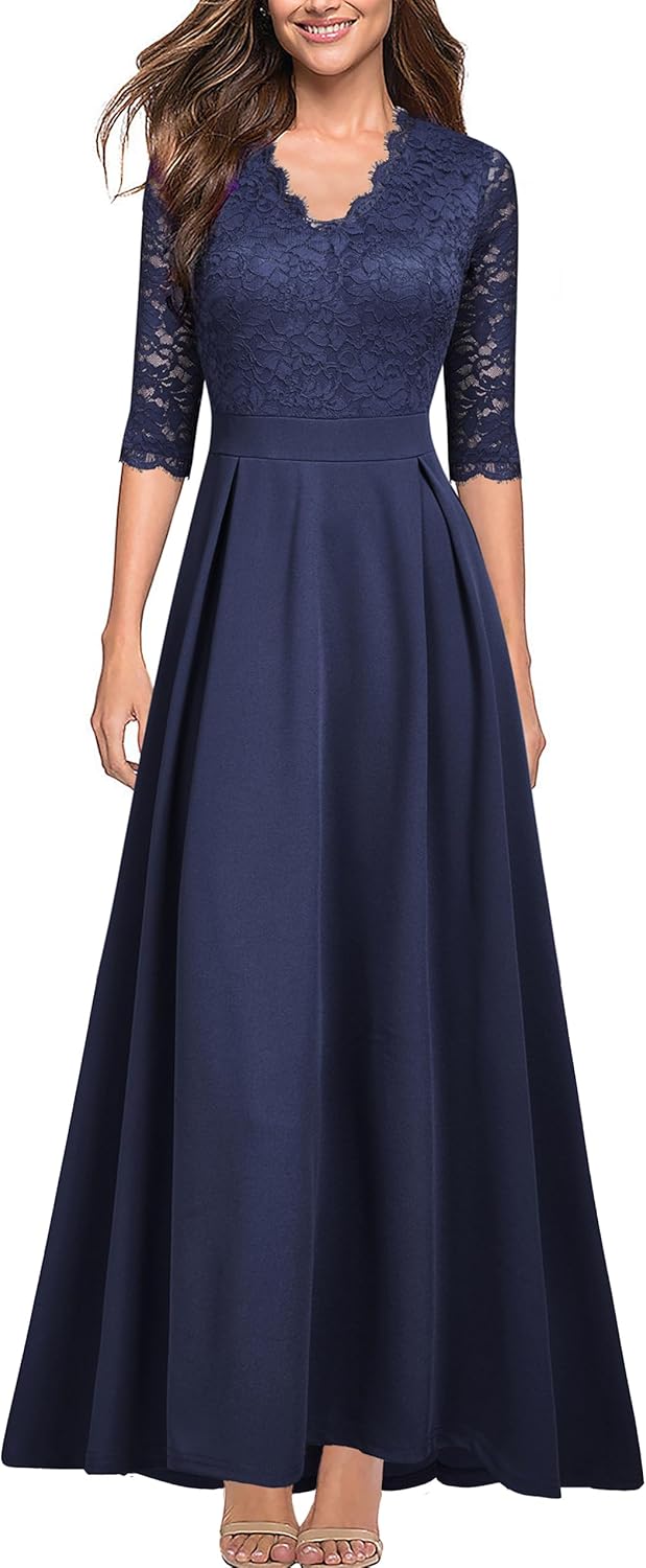 REPHYLLIS Women’s V Neck Lace Vintage Formal Bridesmaid Wedding Long Dress
