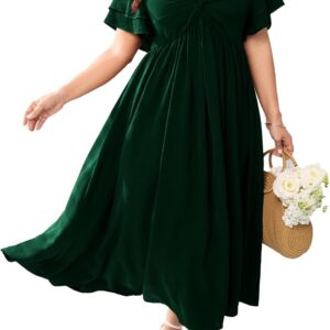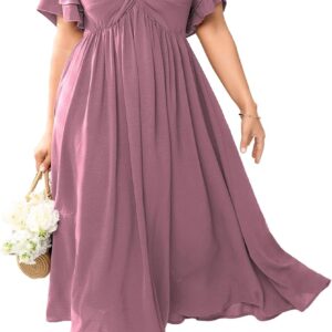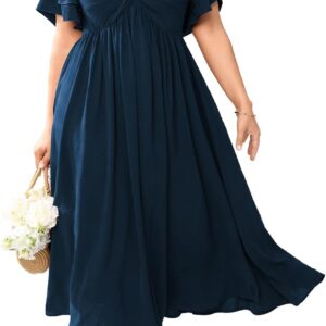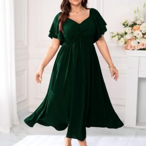 Plus-Size Wedding Guest Dresses Short Sleeves Ruffle Elegant Long Dress