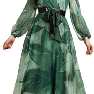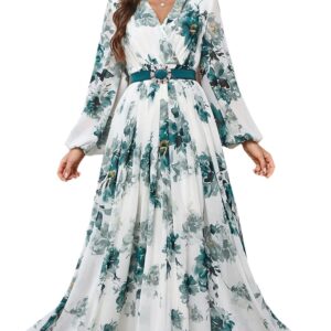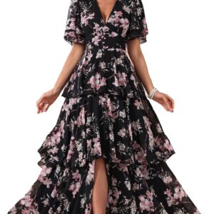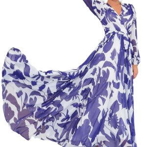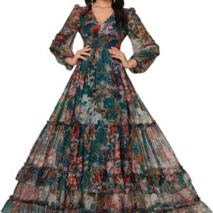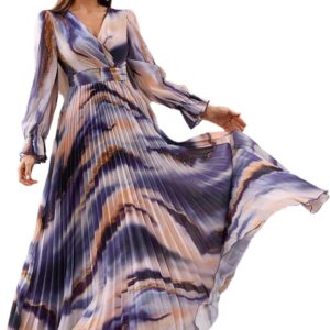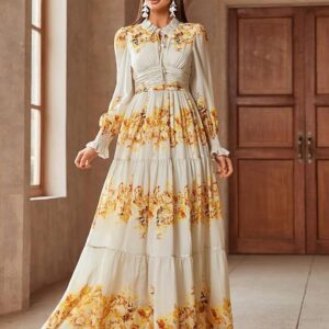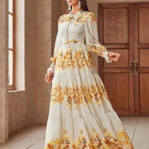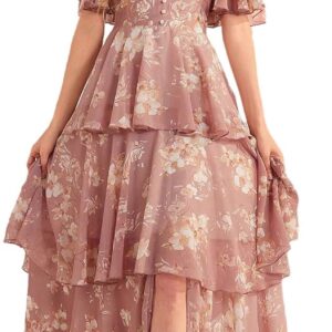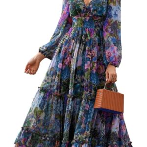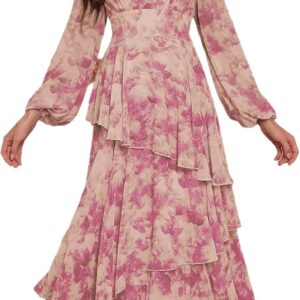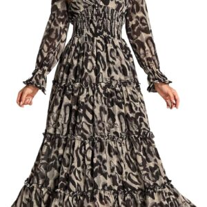 Womens Dresses Simple Printed Elegant Long Sleeve Tiered Ruffle Party Maxi Dress